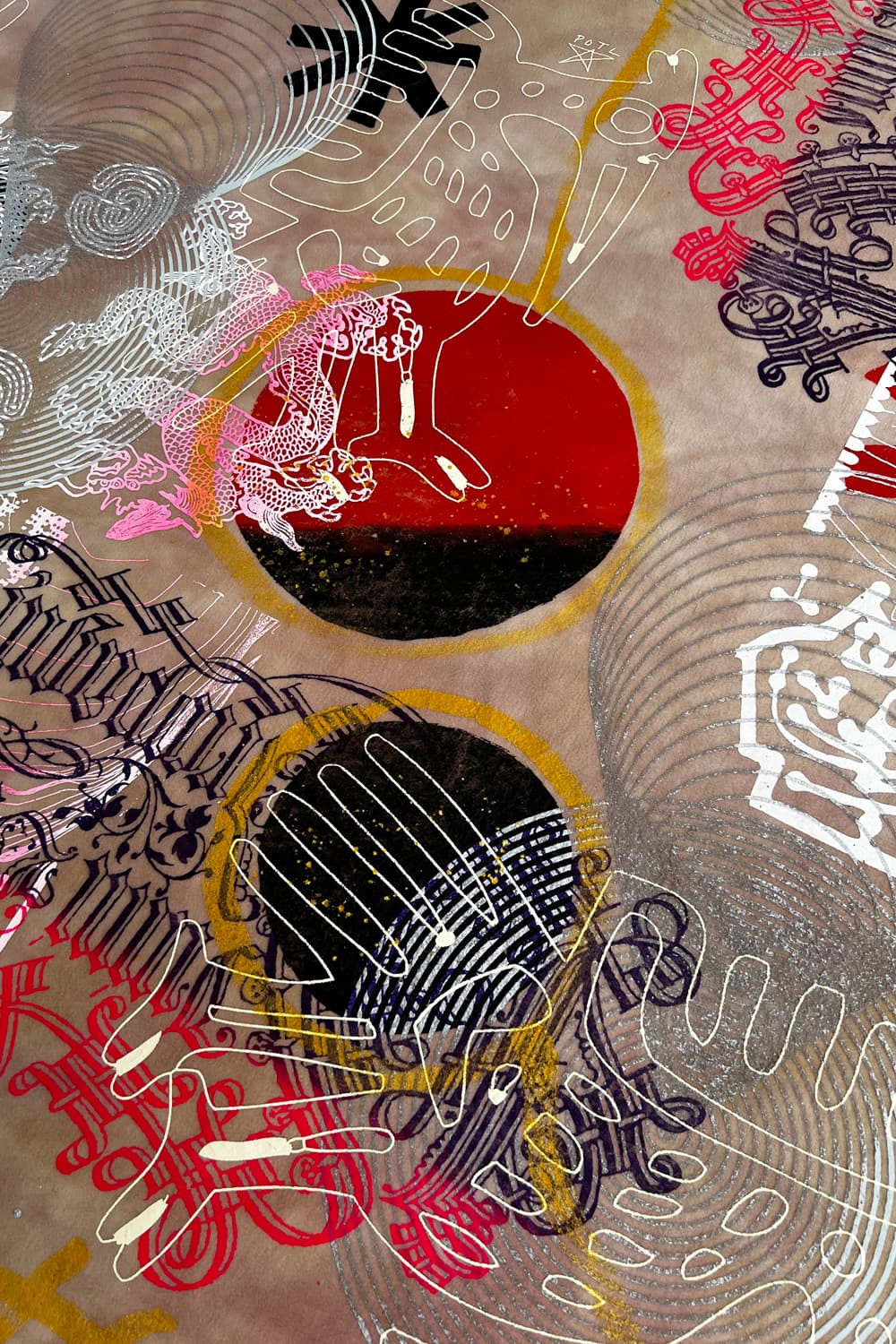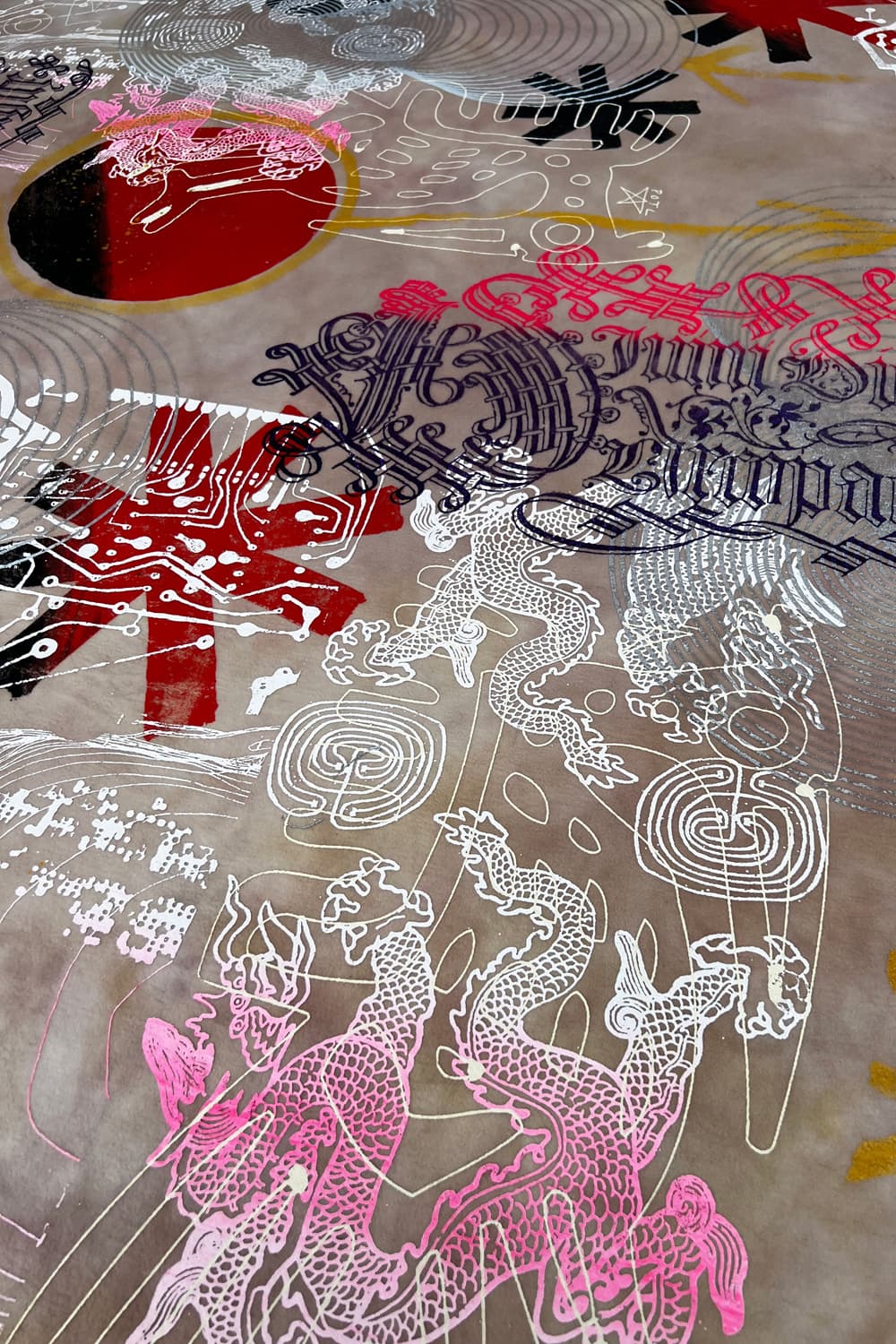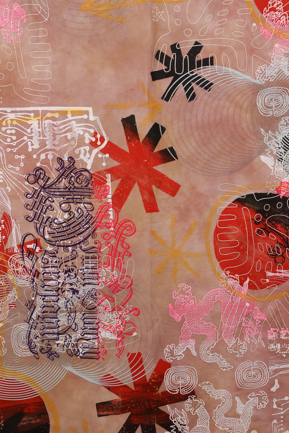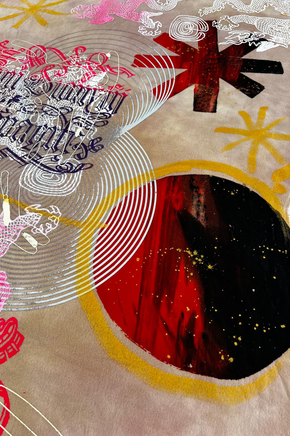 Hand dyed and printed on rough cotton molton. Throw it on your bed, sofa or hang it on the wall as an artwork. Every piece is unique.