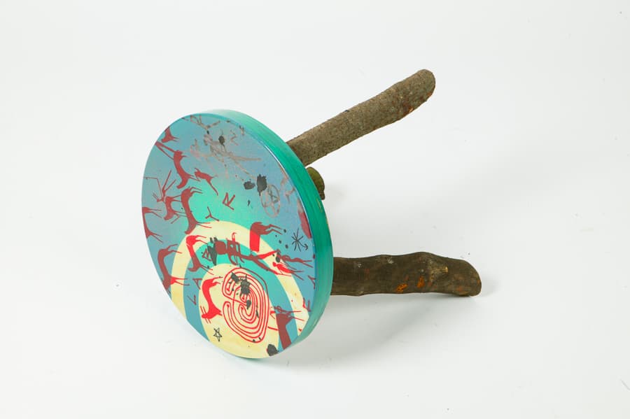 Unique handpainted and hand printed wooden table. Width: 20cm. Height: 30 cm.