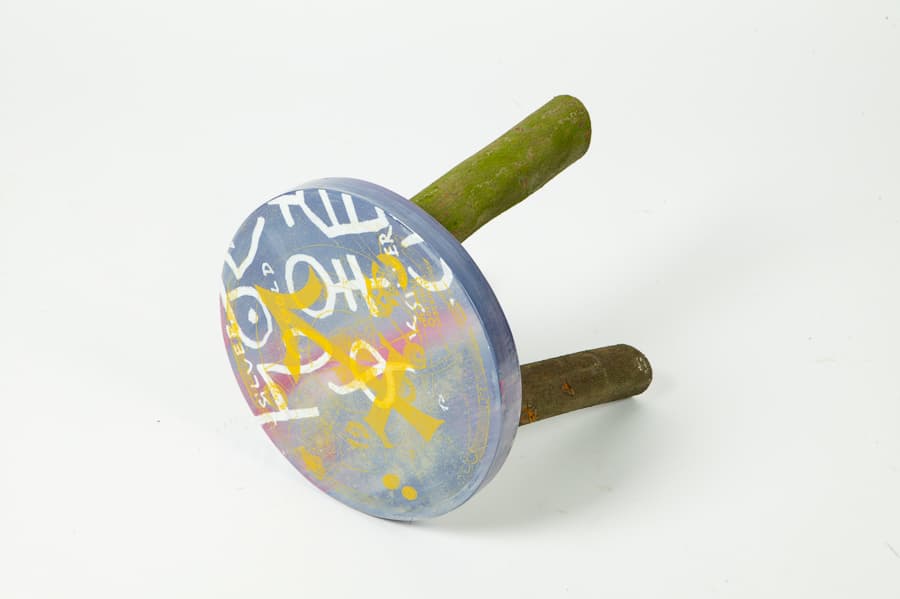 Unique handpainted and hand printed wooden table. Width: 20cm. Height: 30 cm.
