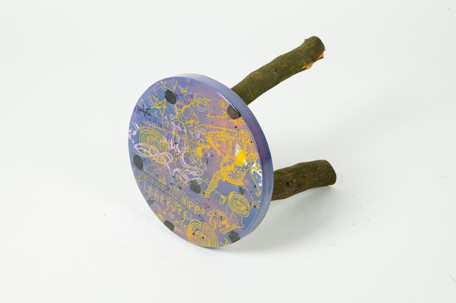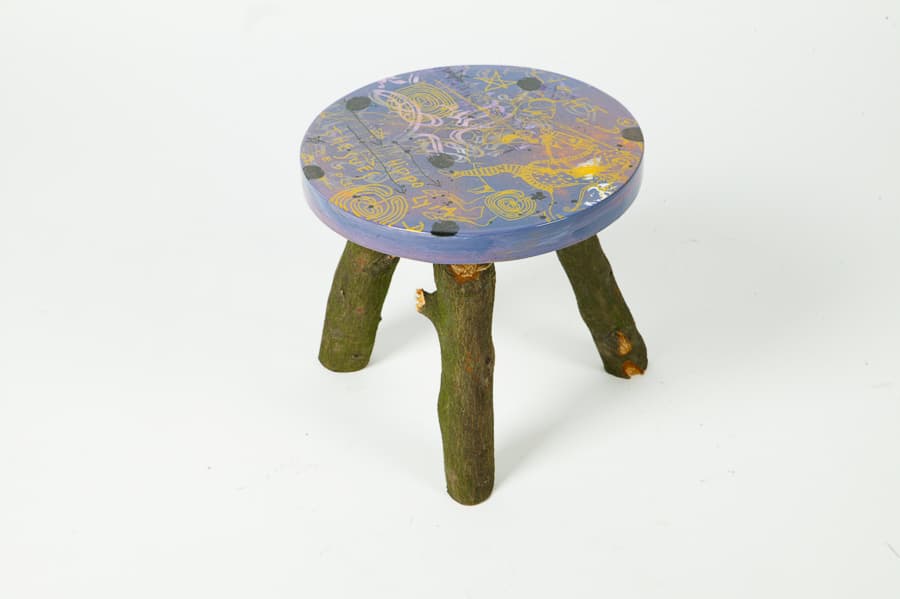 Unique handpainted and hand printed wooden table. Width: 20cm. Height: 30 cm.