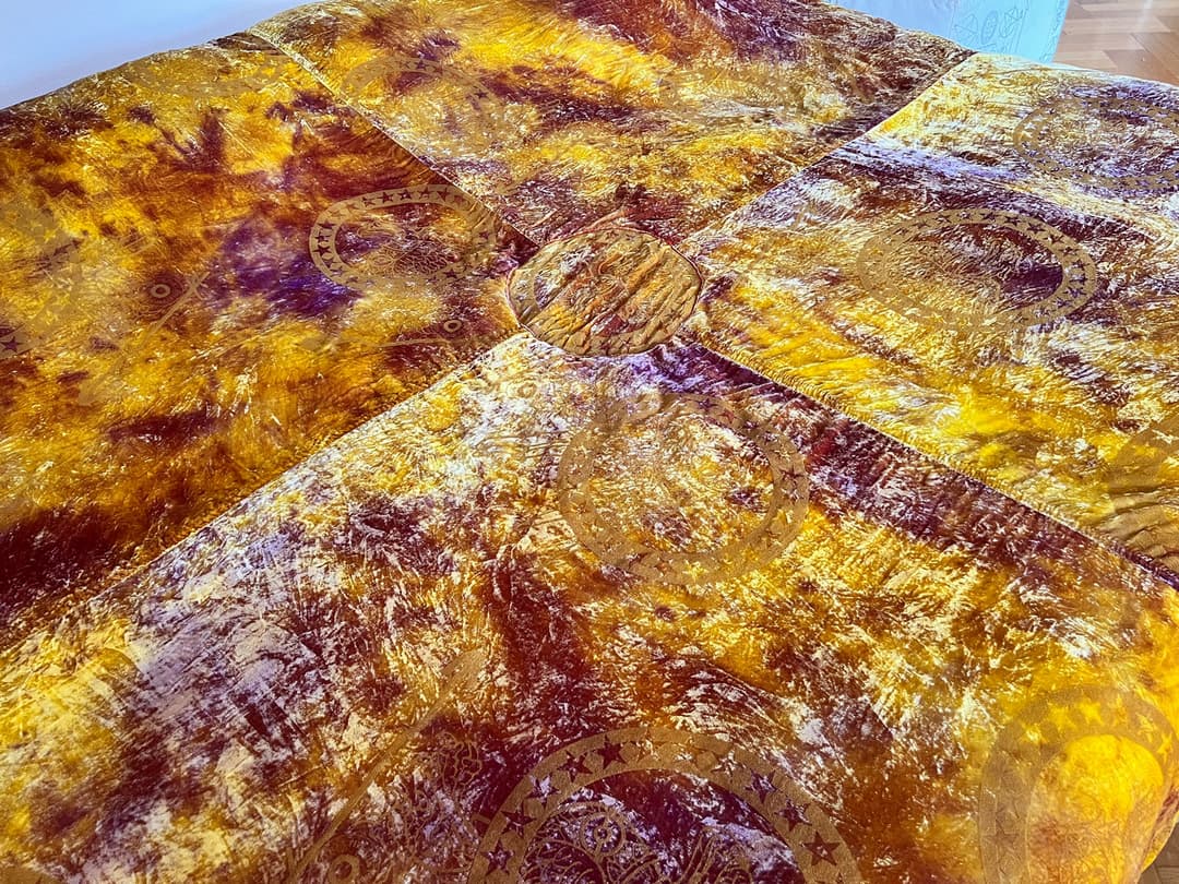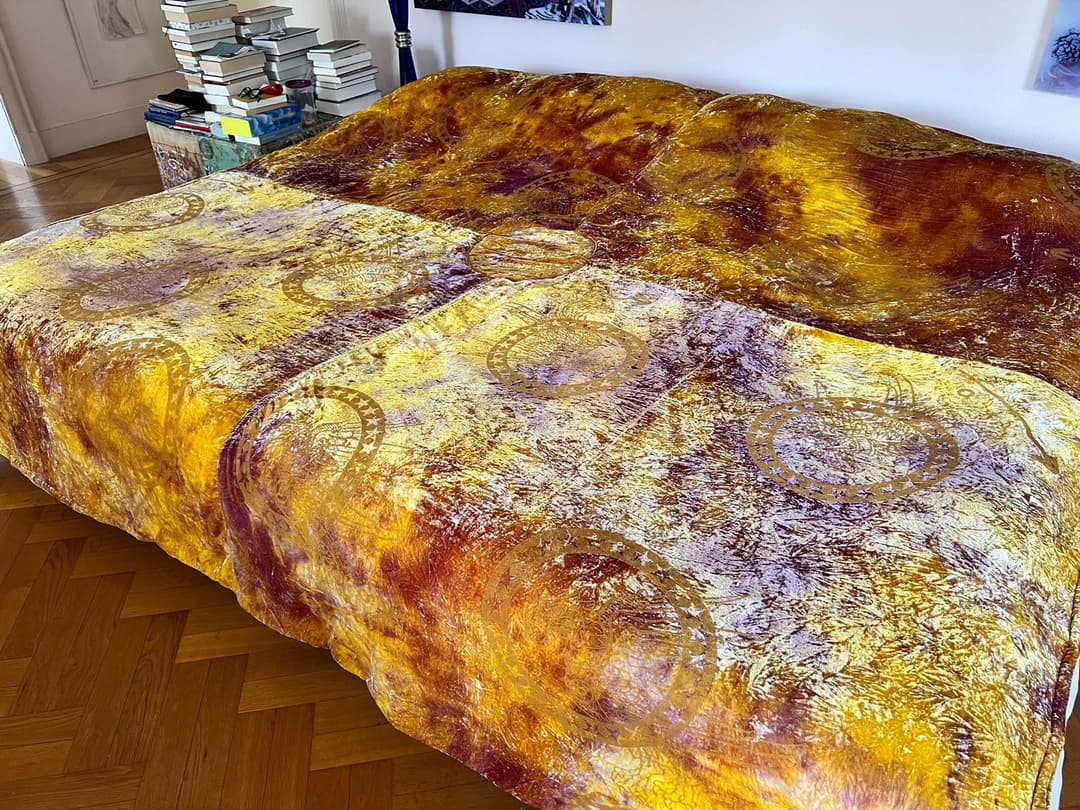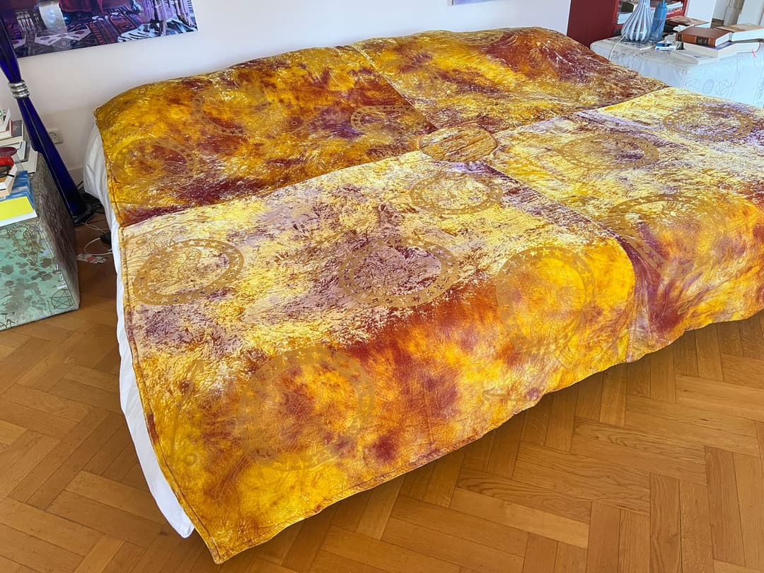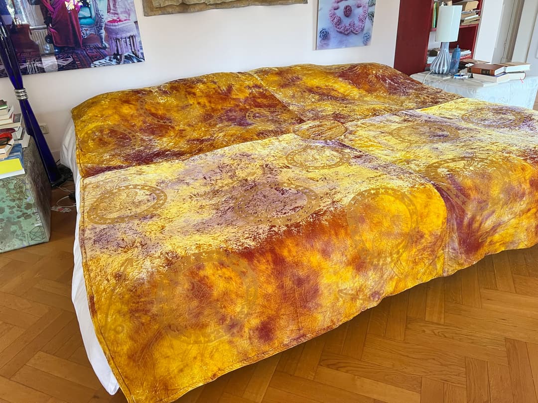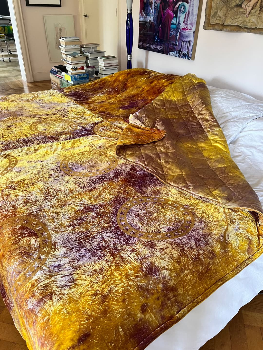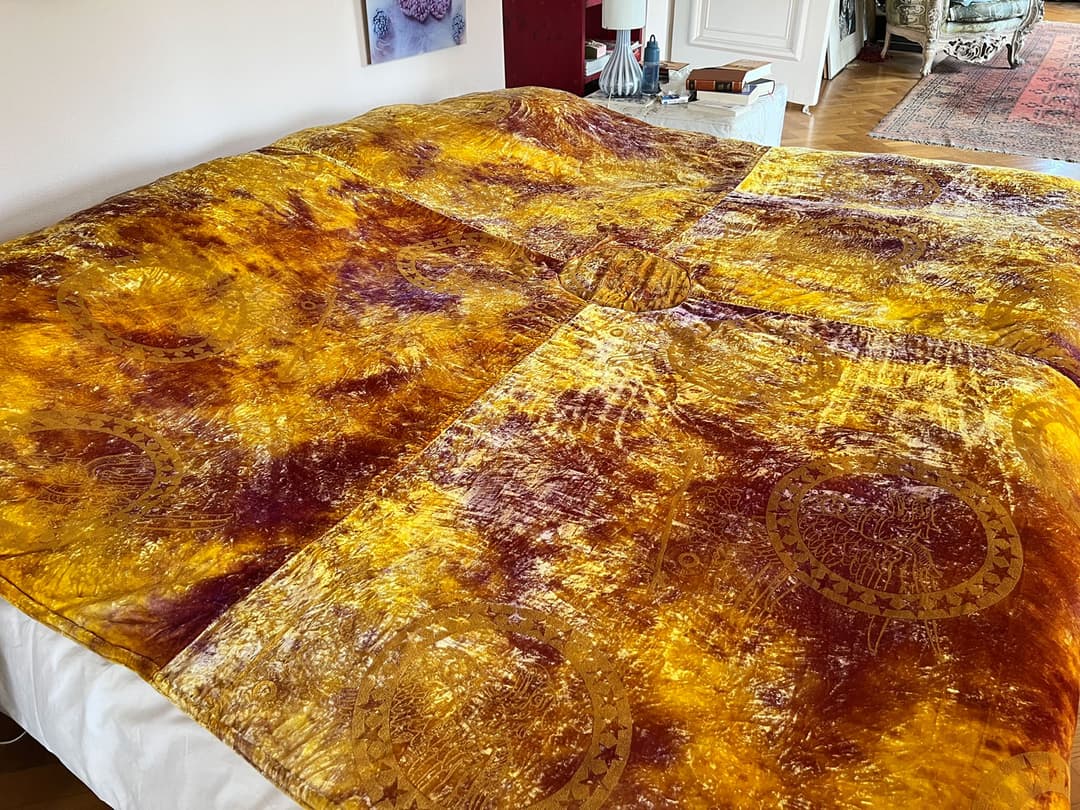 Bedcover made of a luxurious silk velvet fabric. With screen print.