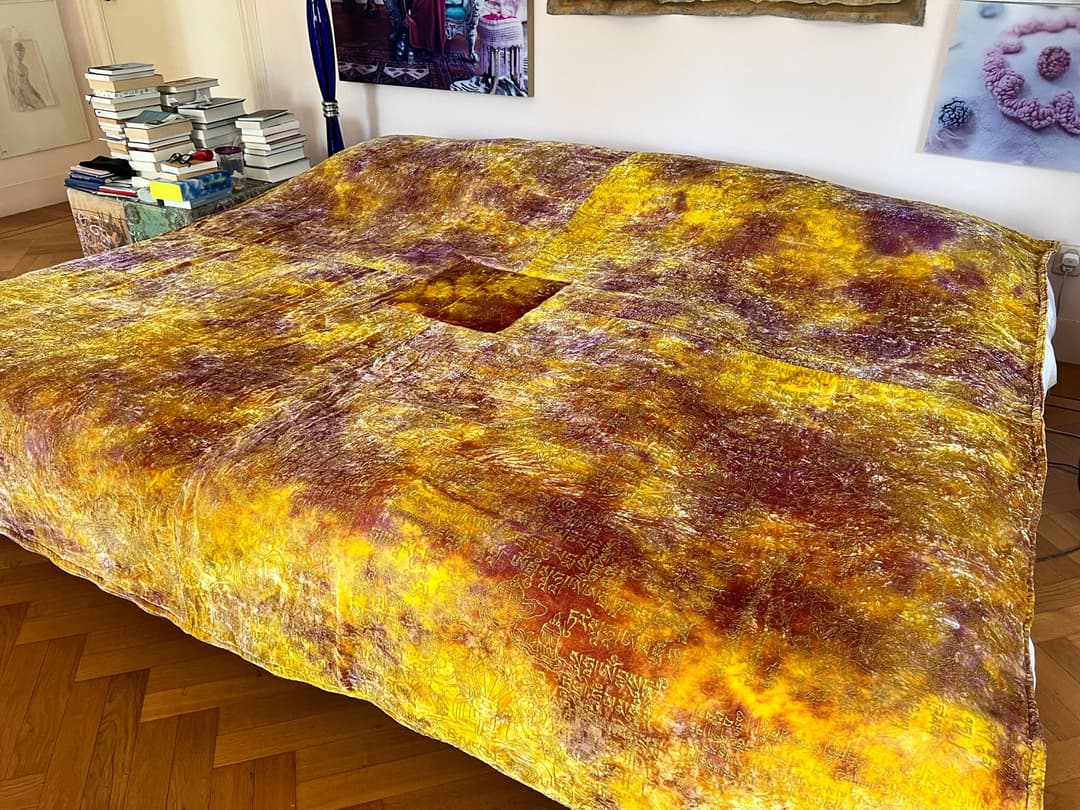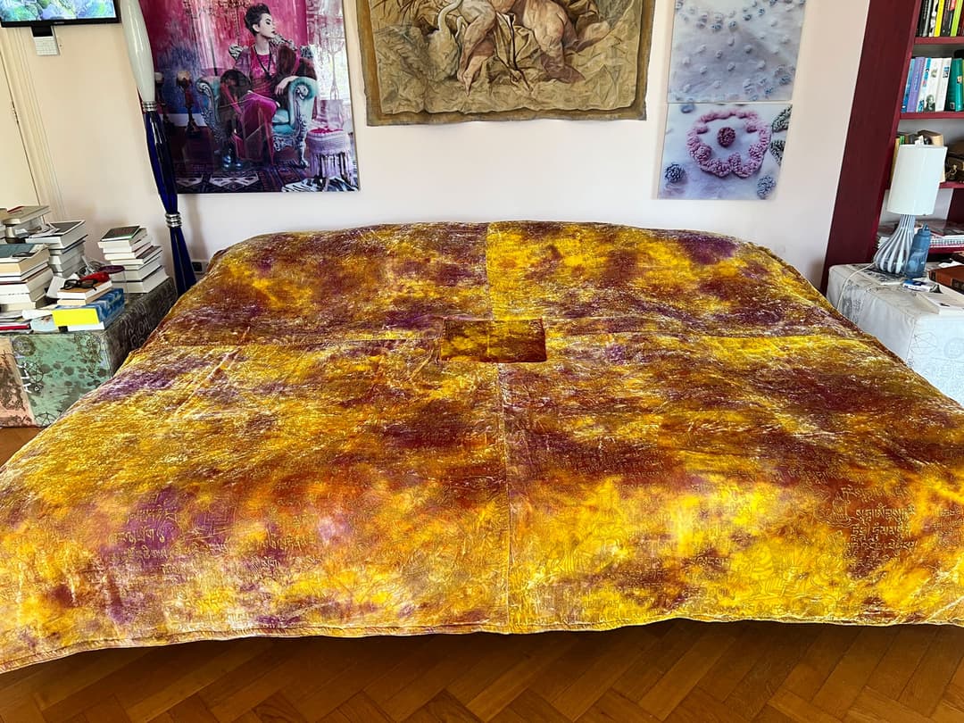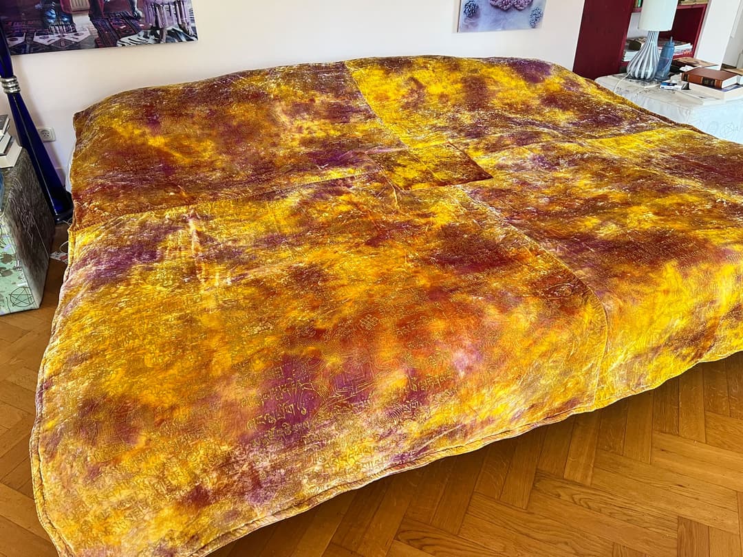 Bedcover made of a luxurious silk velvet fabric. With screen print.