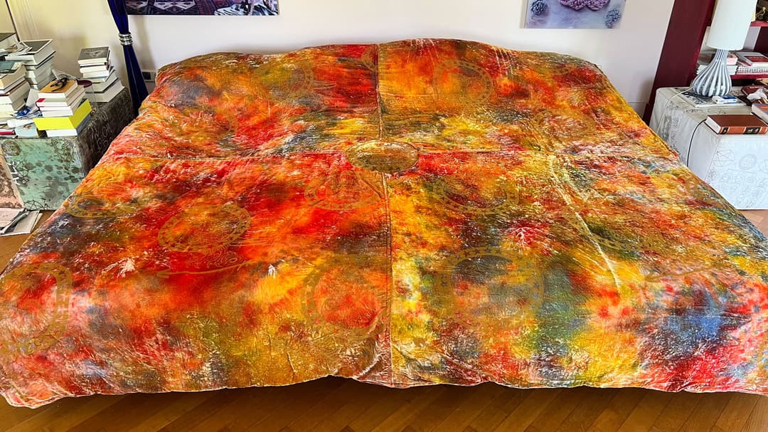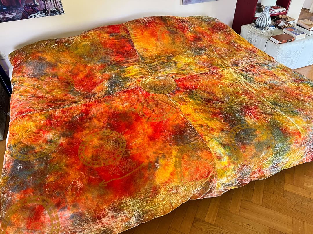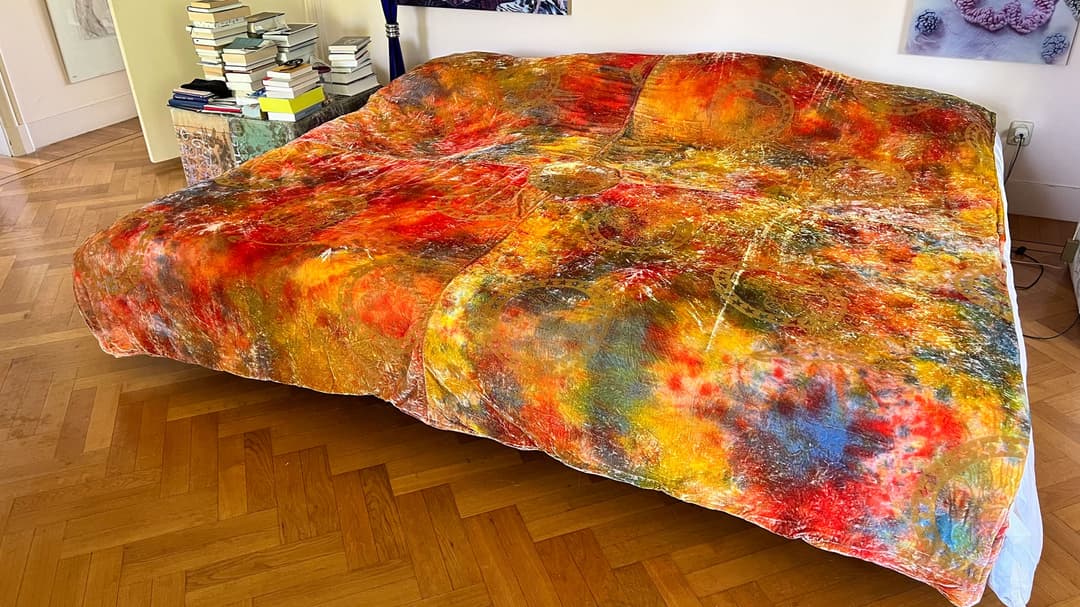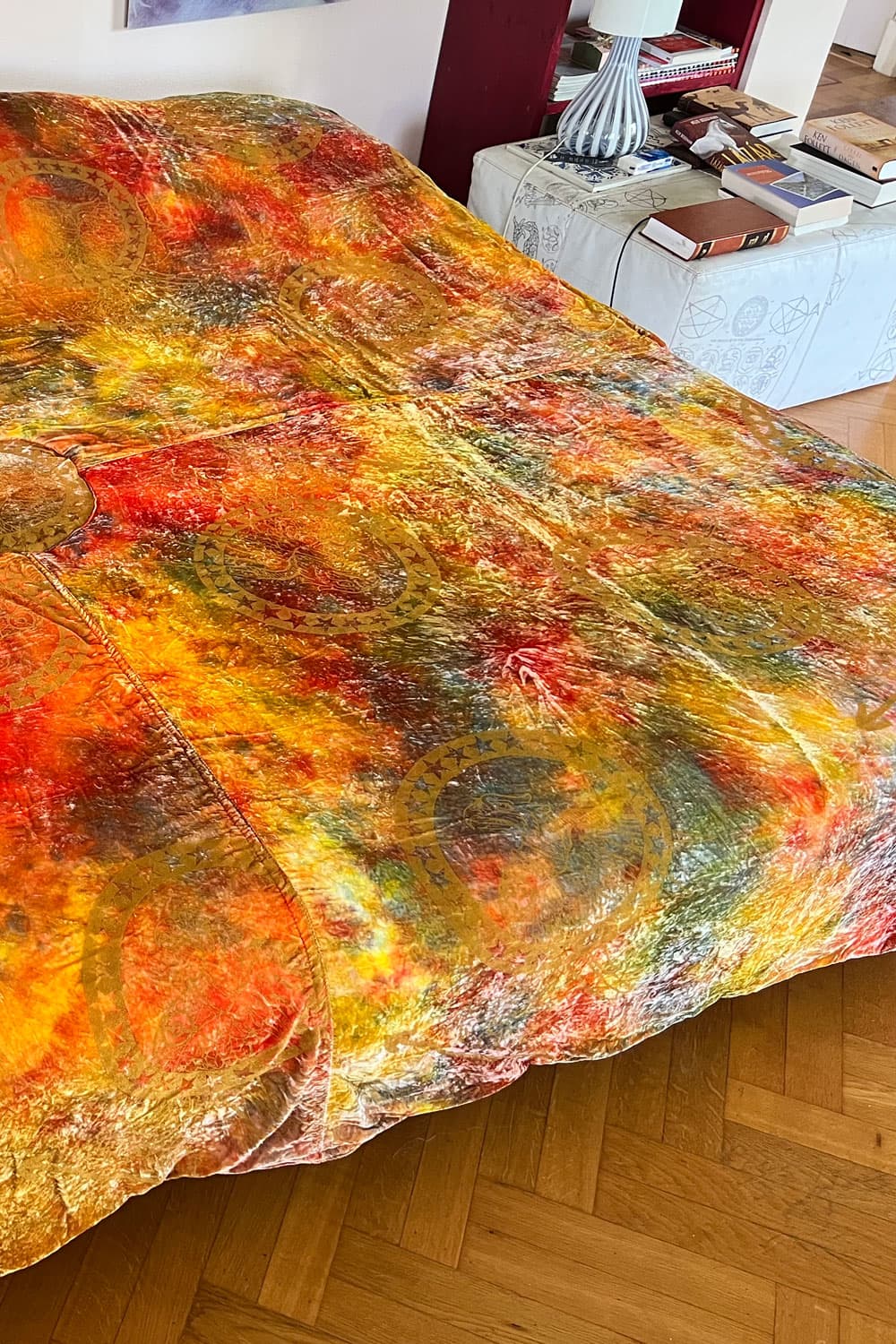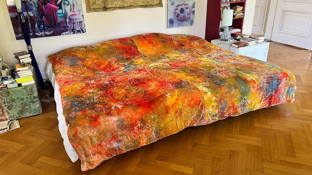 Bedcover made of a luxurious silk velvet fabric. With screen print.