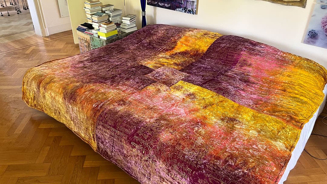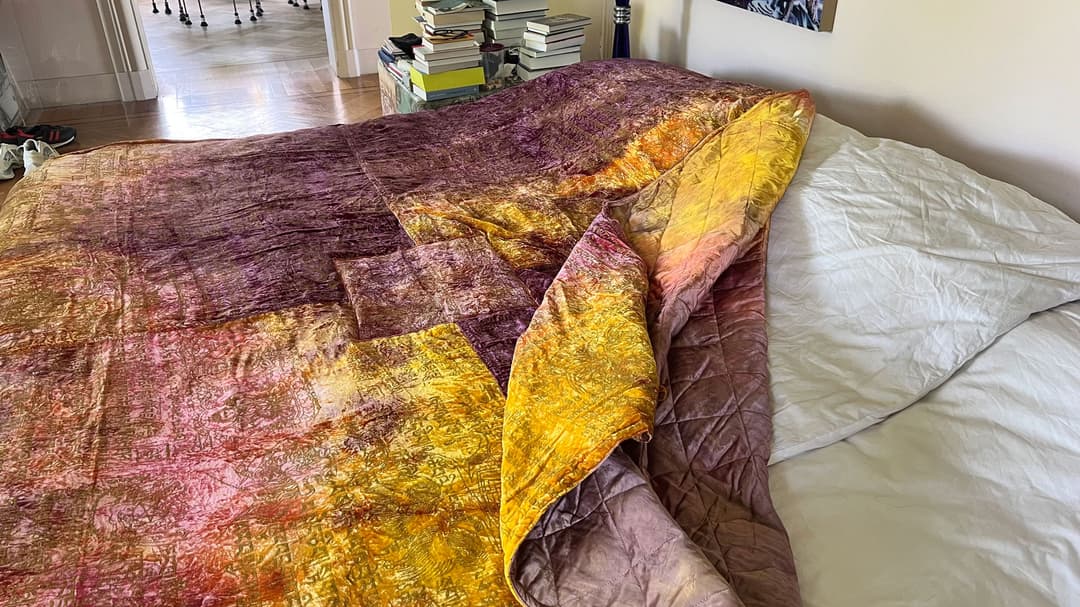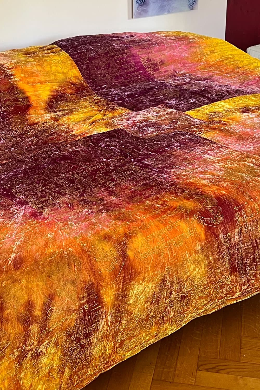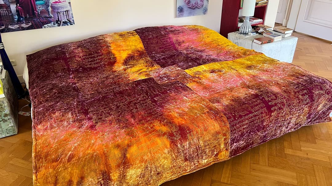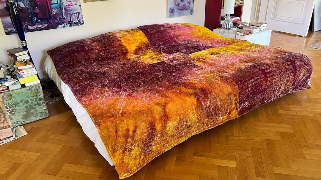 Bedcover made of a luxurious silk velvet fabric. With screen print.