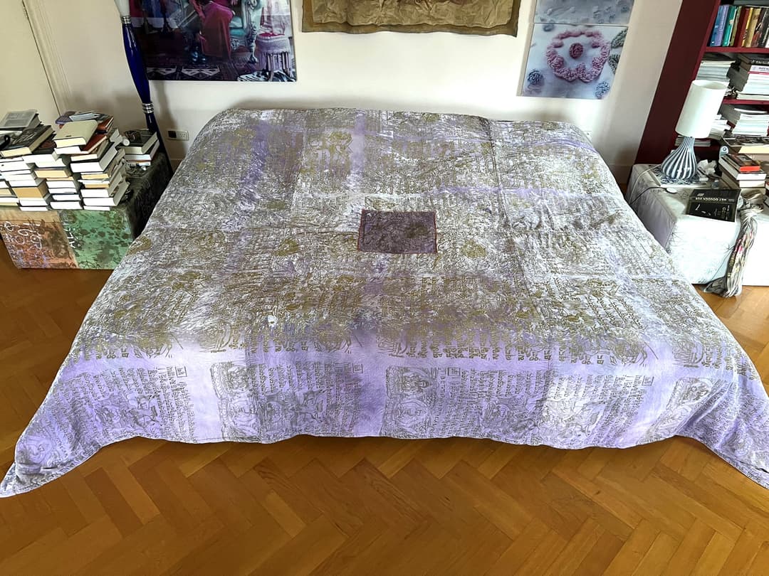 Bedcover made of a luxurious silk velvet fabric. With screen print.