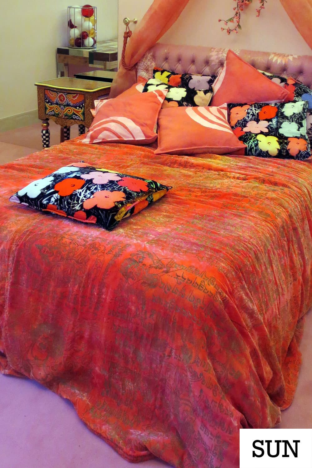 Bedcover made of a luxurious silk velvet fabric. With screen print.