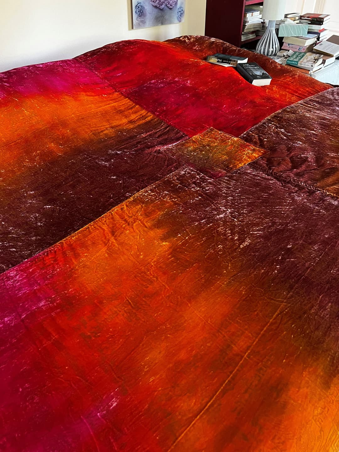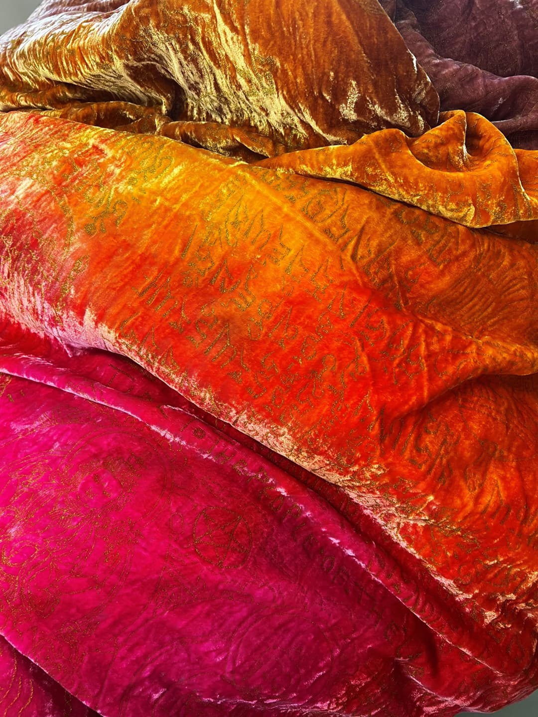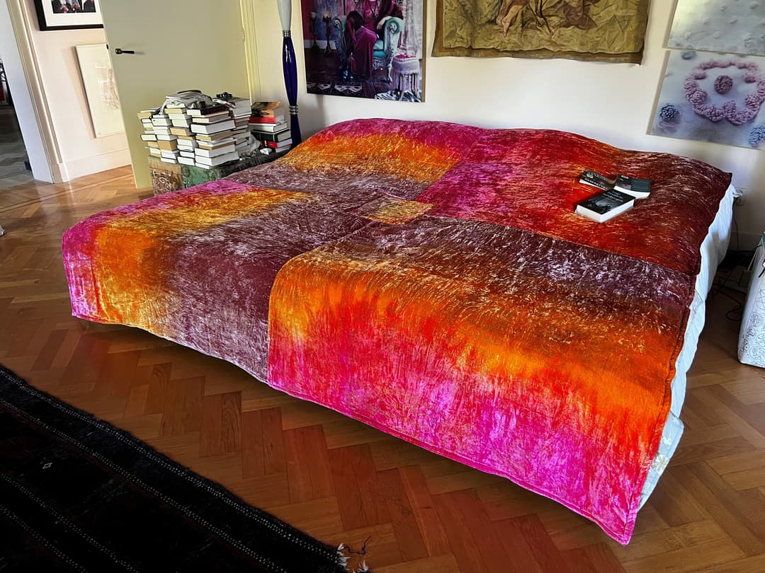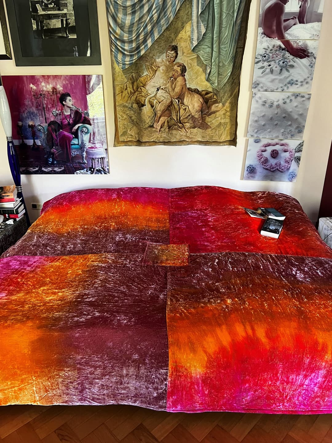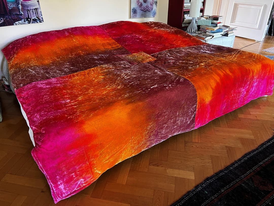 Bedcover made of a luxurious silk velvet fabric. With screen print.