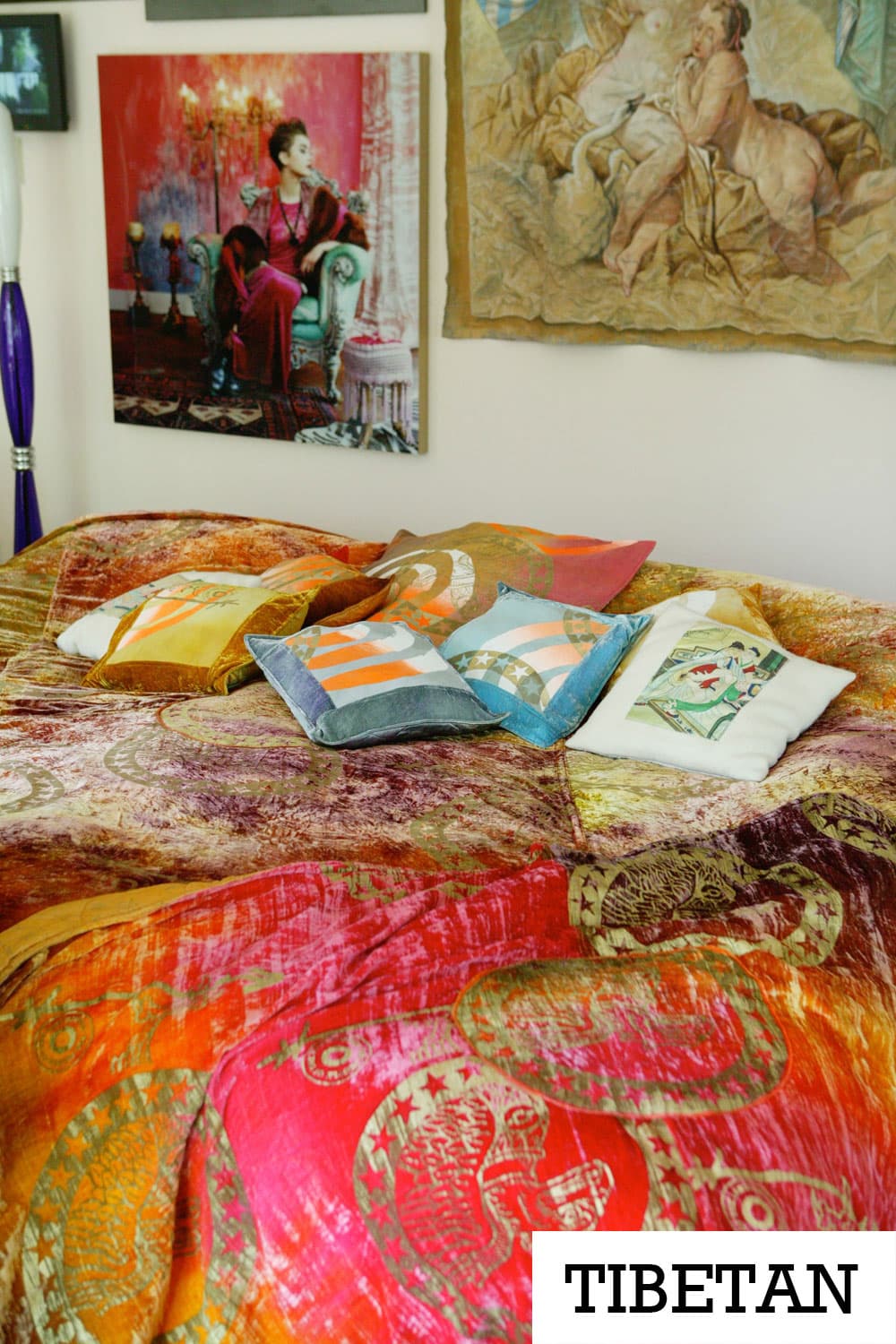 Bedcover made of a luxurious silk velvet fabric. With screen print.