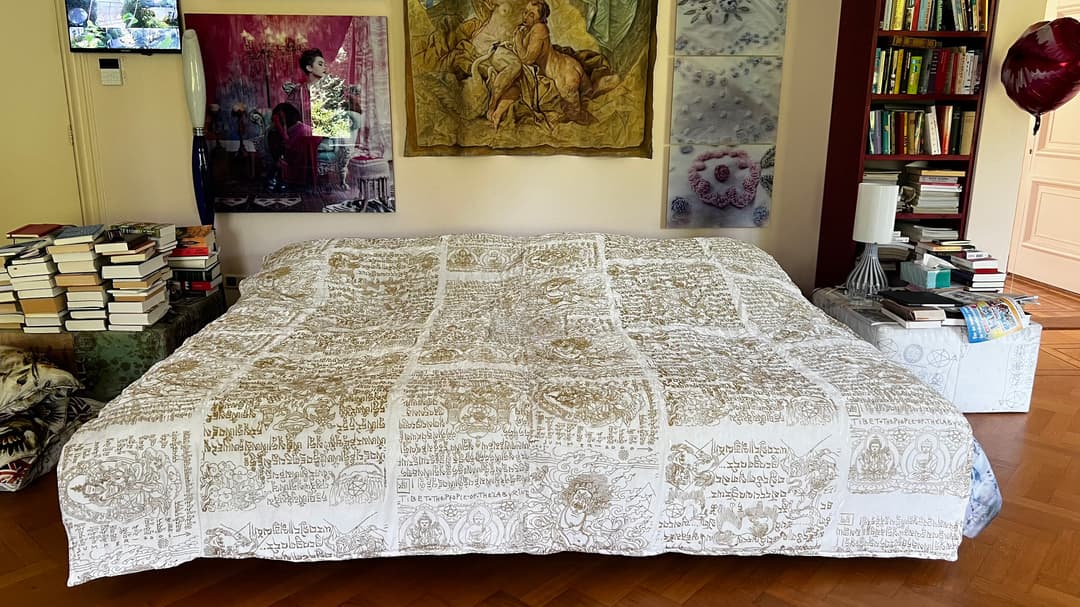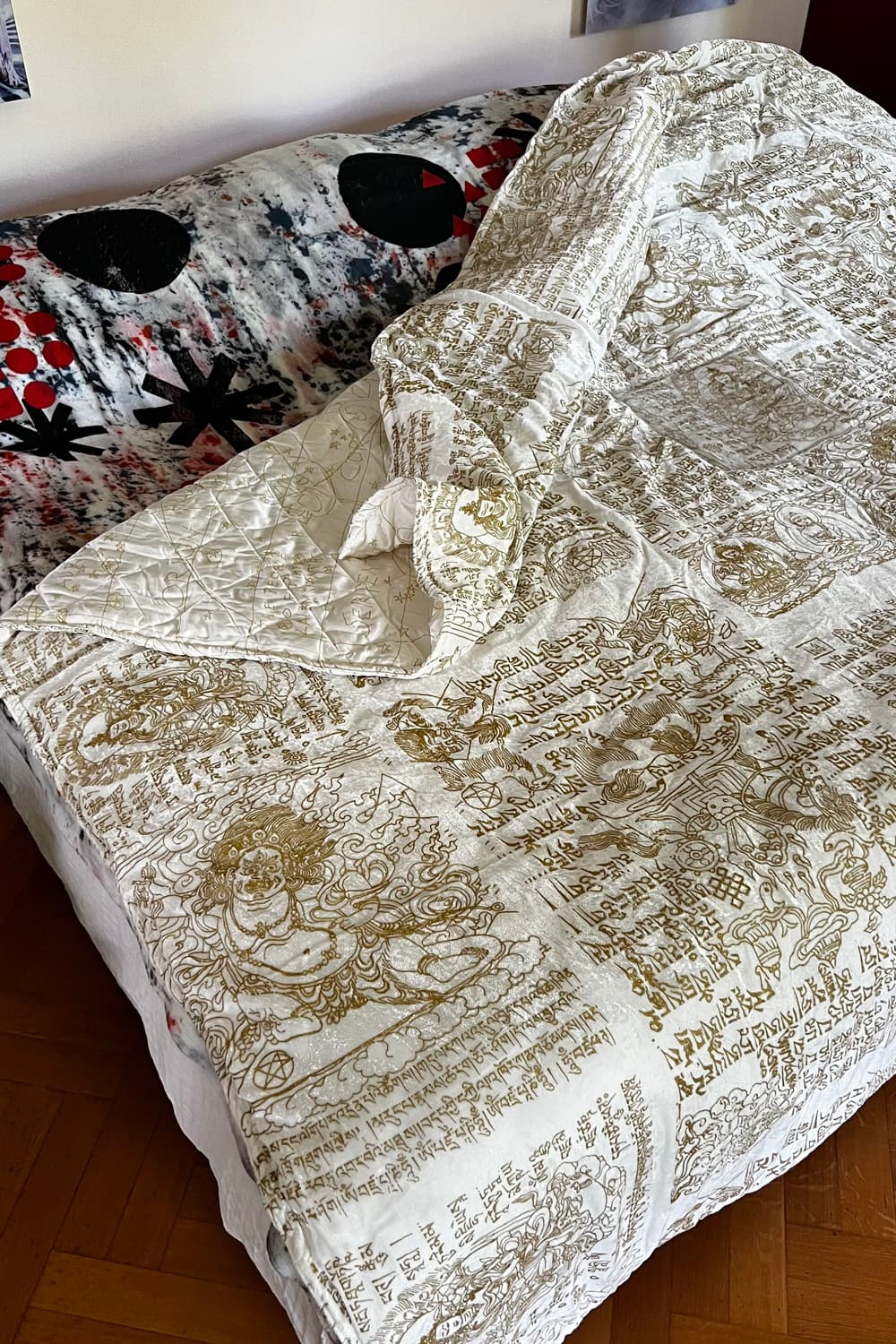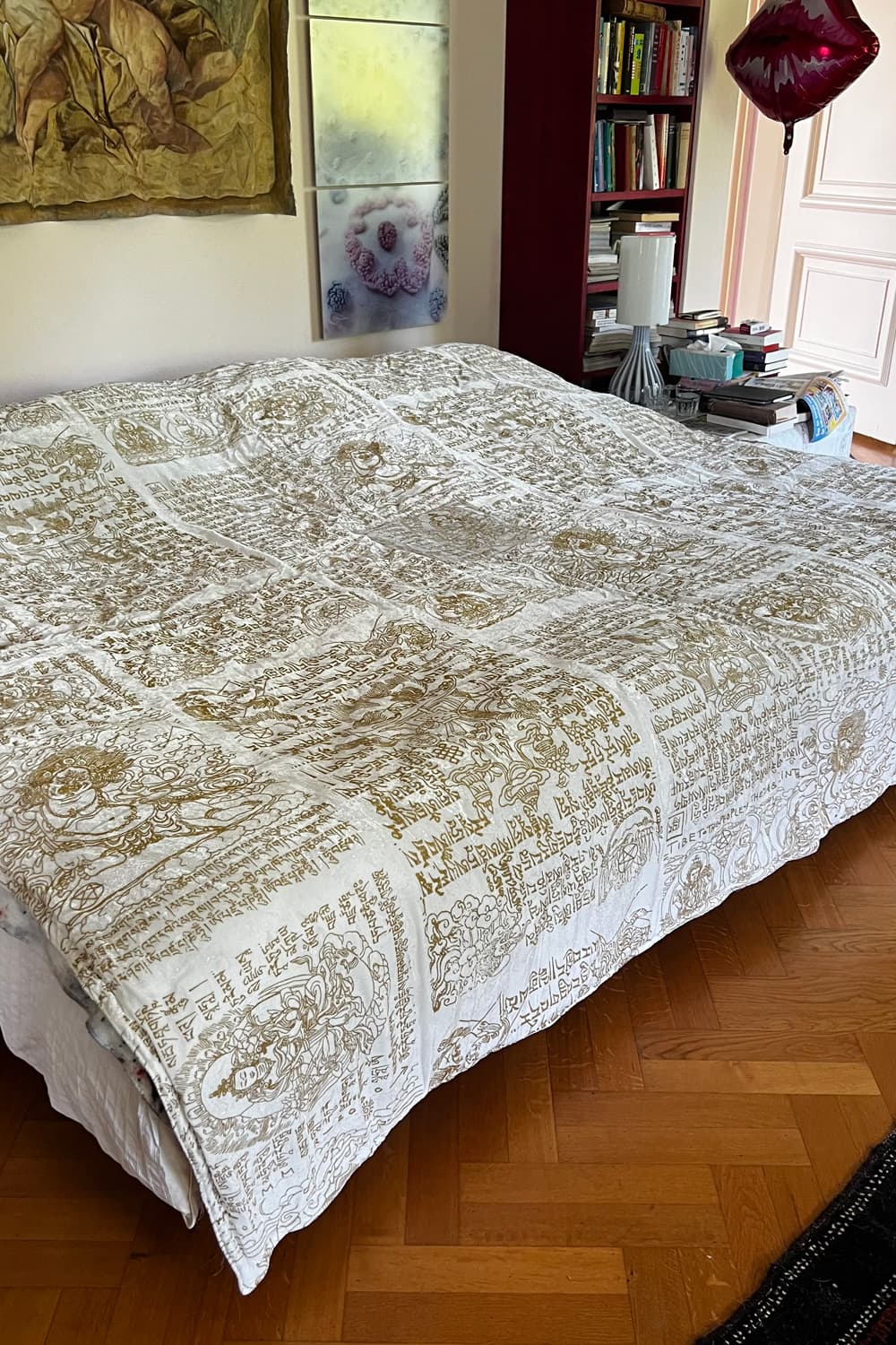 Bedcover made of a luxurious silk velvet fabric. With screen print.