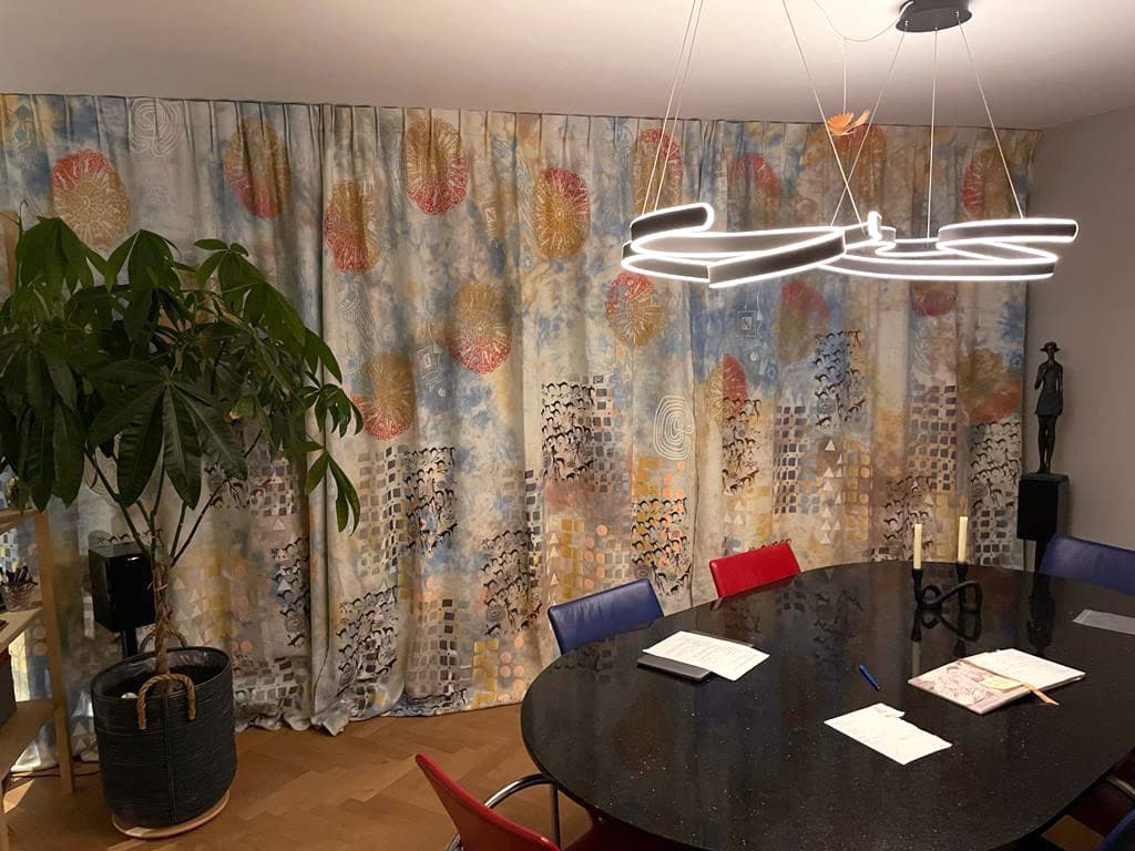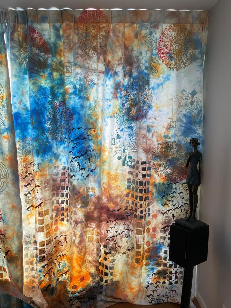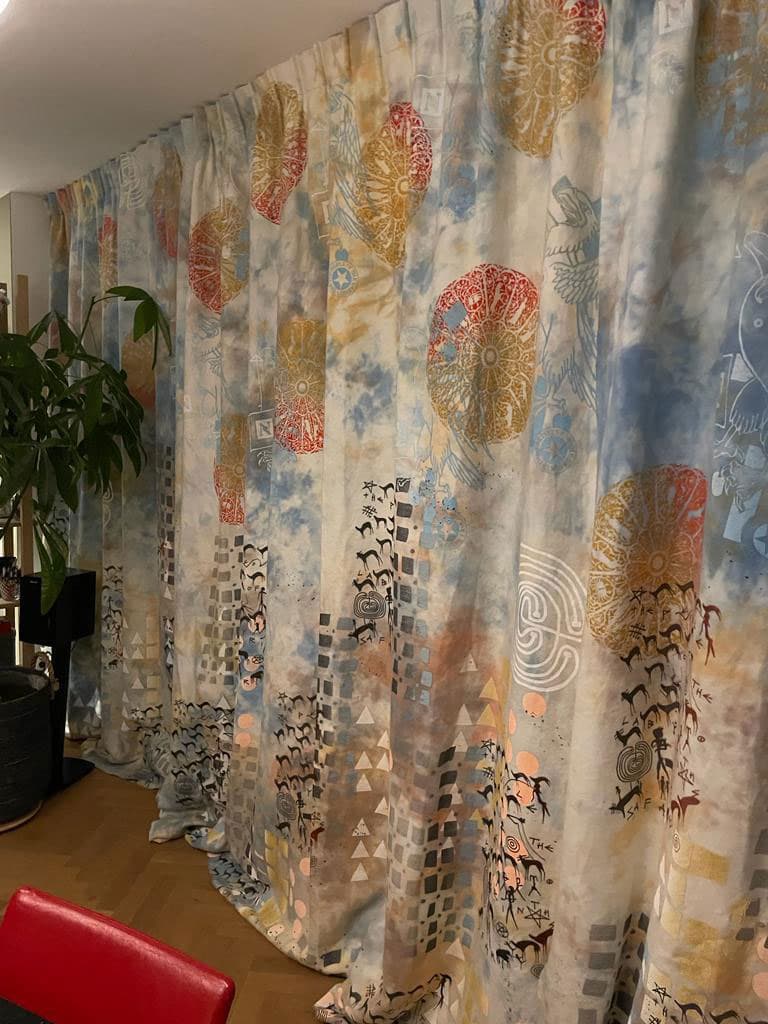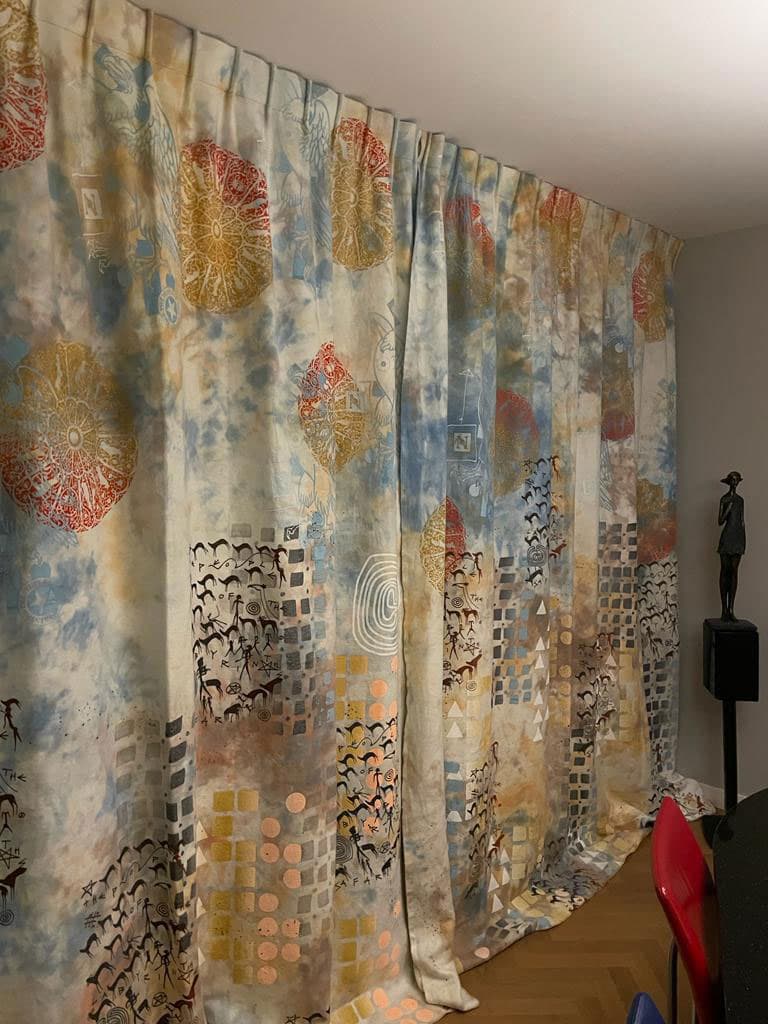 Dress up your rooms. At POTL we design made-to-measure curtains. They are hand dyed and screen printed in our atelier on linen, silk and cotton molton material. Or digitally printed on recycled polyester.