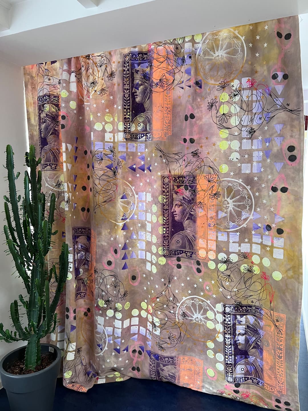 Dress up your rooms. At POTL we design made-to-measure curtains. They are hand dyed and screen printed in our atelier on linen, silk and cotton molton material. Or digitally printed on recycled polyester.