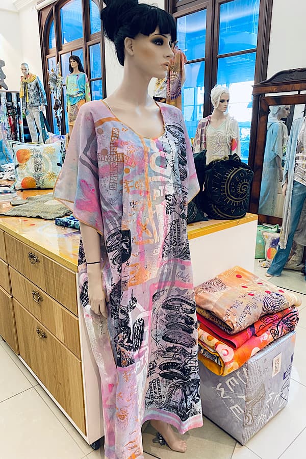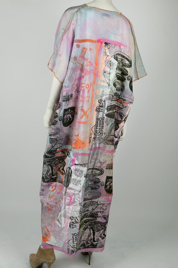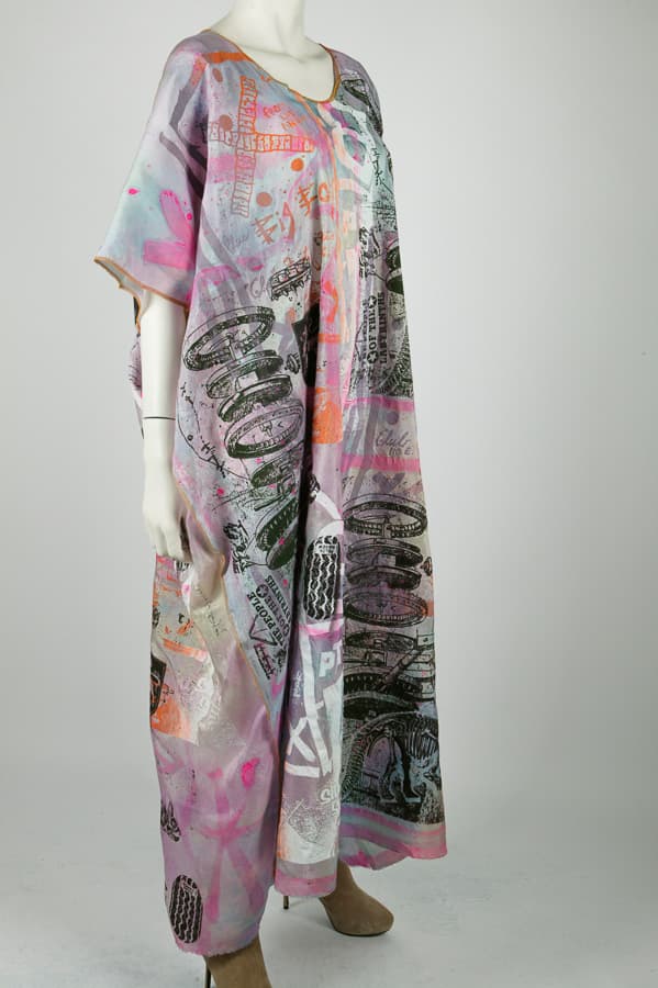 Unique Handprinted, handdyed and handpainted luxurious silk caftan. Limited Edition. One size fits all. Couture for summer holidays, pool parties and summer beach days."Casual for Presidents".