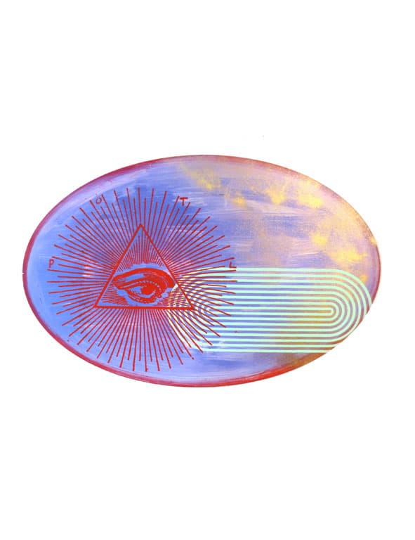 Mixed Media Painting. Acrylic paint on wood panel, screenprint and mixed media techniques. 45 x 70 cm. For more info please contact the POTL Store Amsterdam.