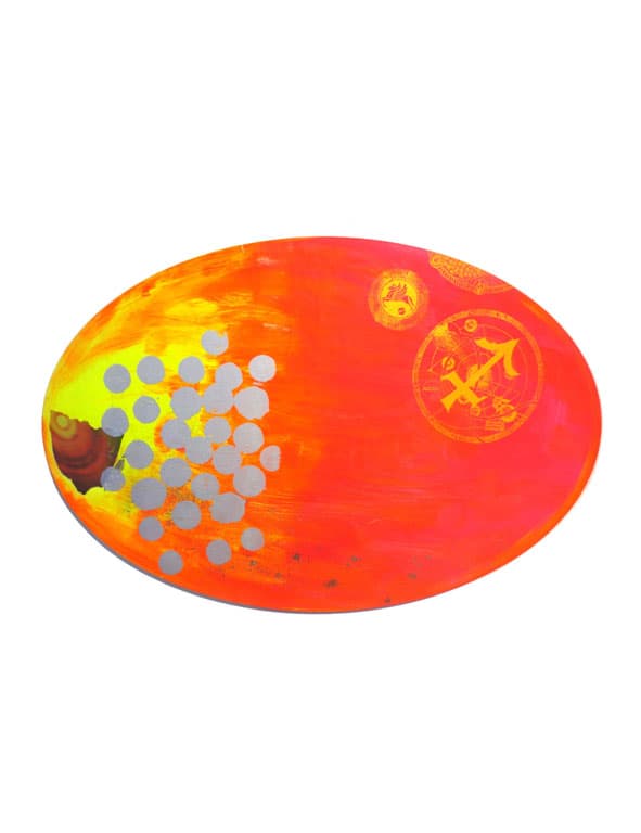 Mixed Media Painting. Acrylic paint on wood panel, screenprint and mixed media techniques. 80 x 120 cm. For more info please contact the POTL Store Amsterdam.