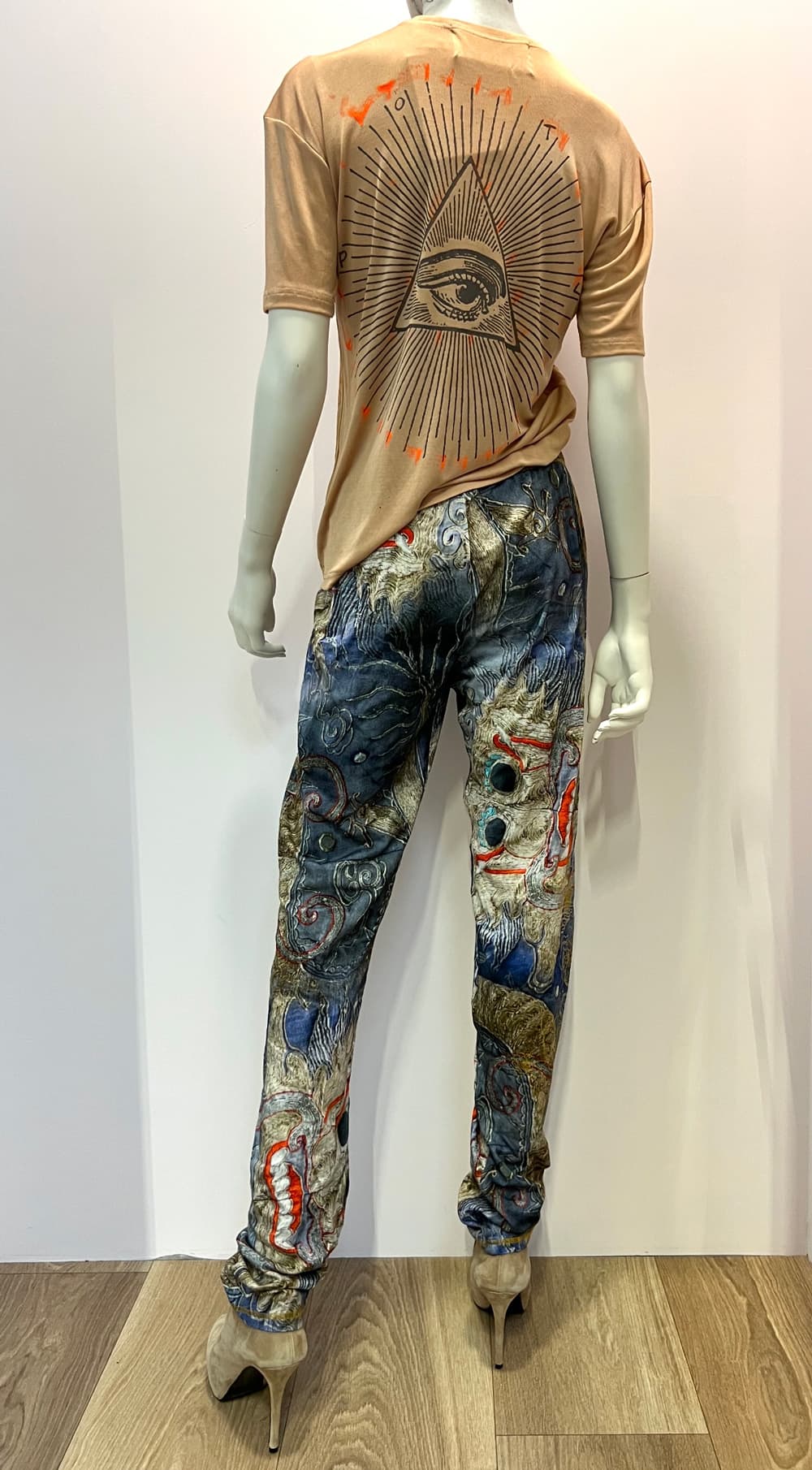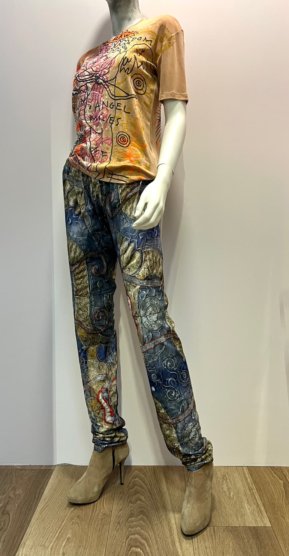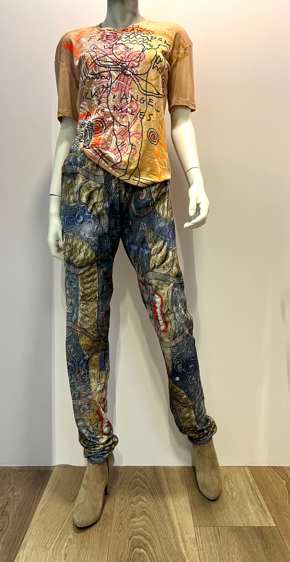 Easy relaxed fit light cotton jersey jog pants. Photo print on cotton jersey. Onesize. 100% cotton.
