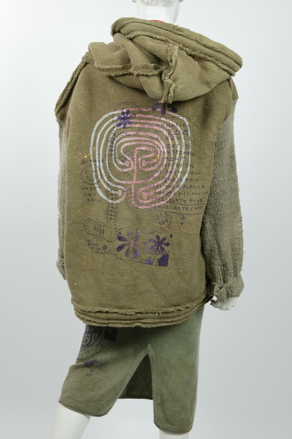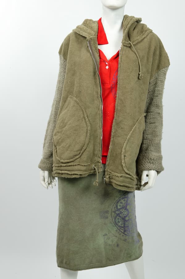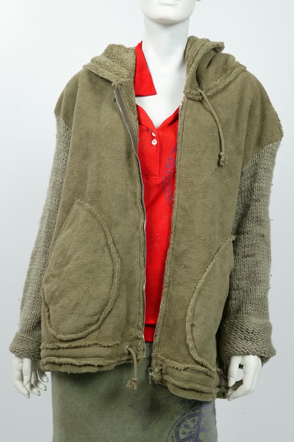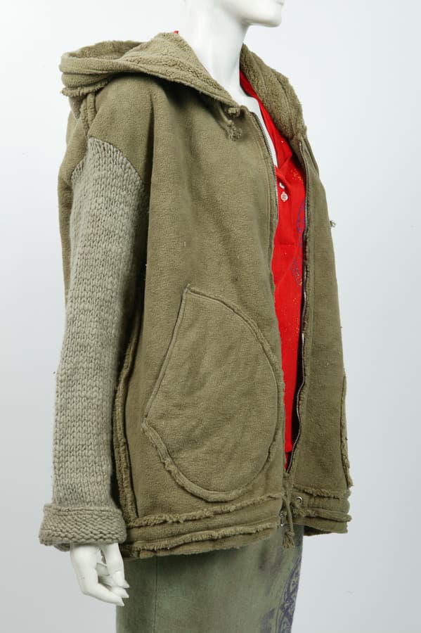 Teddy Hooded Jacket with Woolen knit sleeves. Onesize. 80% cotton, 20% polyamide, sleeves 100% wool.
