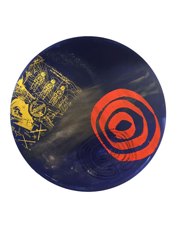 Mixed Media Painting. Acrylic paint on wood panel, screenprint and mixed media techniques. 100 x 100 cm. For more info please contact the POTL Store Amsterdam.
