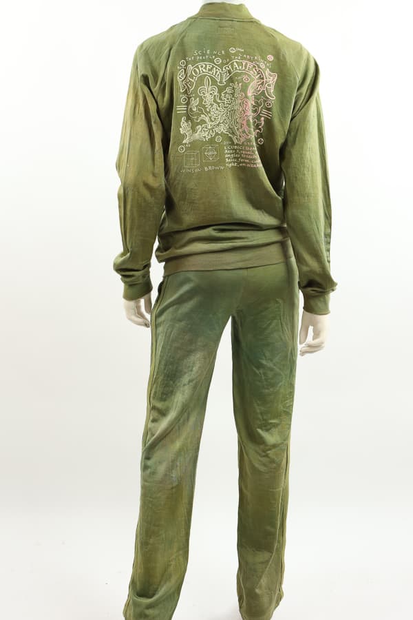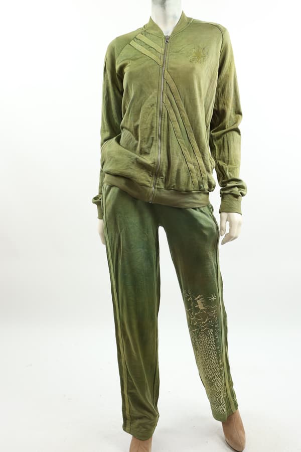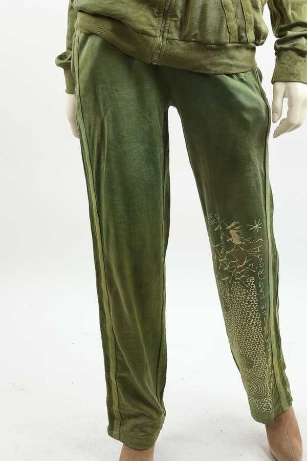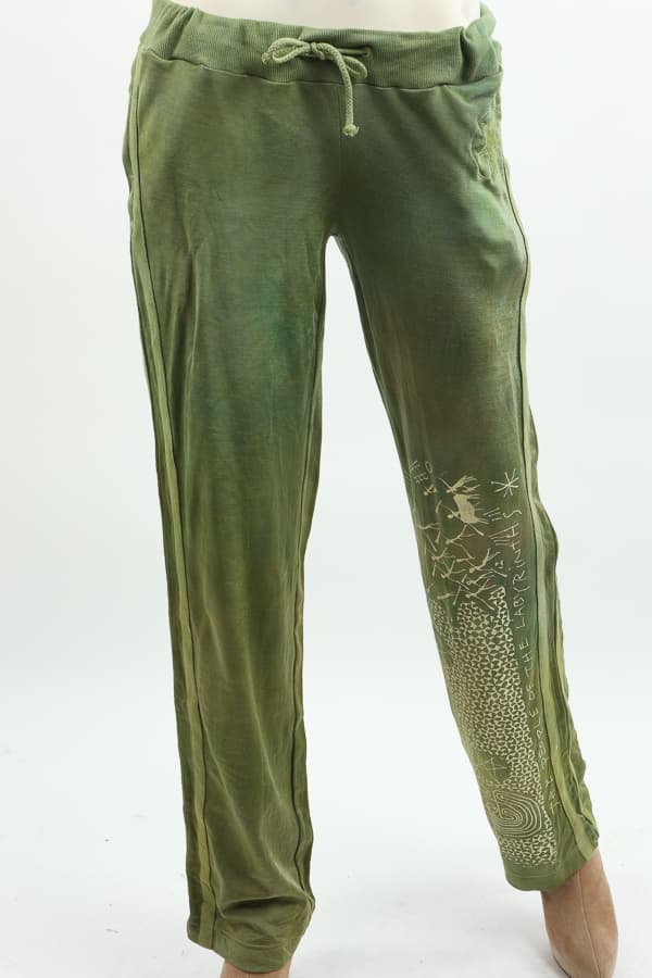 Jogging pants with a golden screenprint on one of the legs and a drawstring at the waist. Composition: 83% cotton, 12% rayon, 5% nylon.