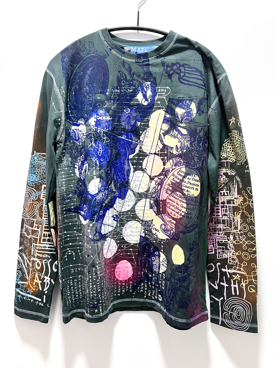 Cotton long sleeve t-shirt, hand printed and hand dyed in our atelier.