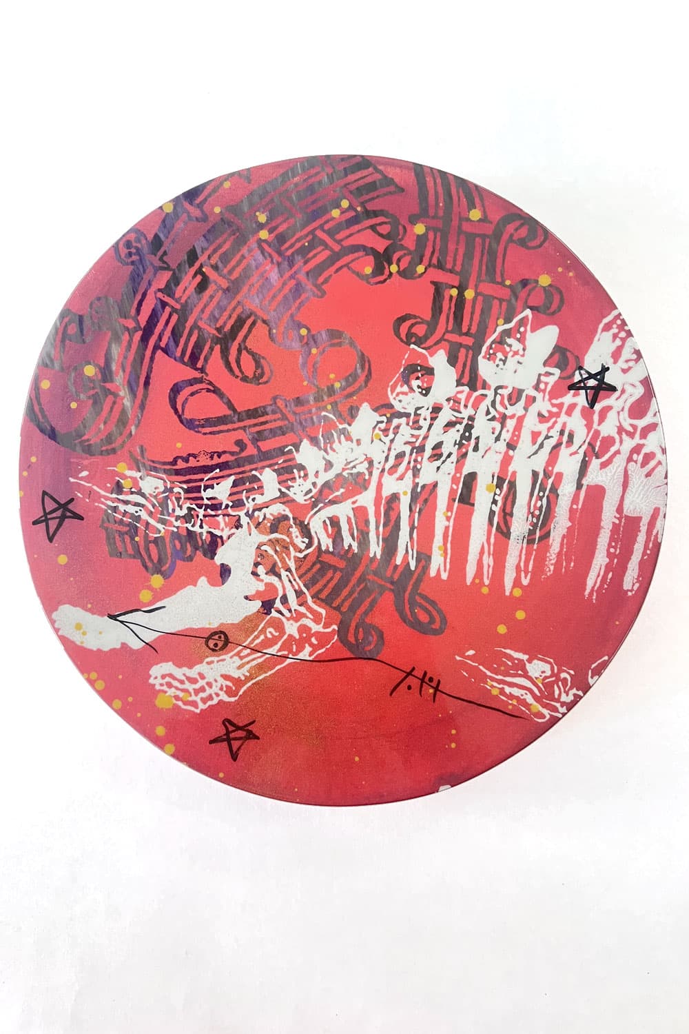 Mixed Media Painting. Acrylic paint on wood panel, screenprint and mixed media techniques. 30 cm.