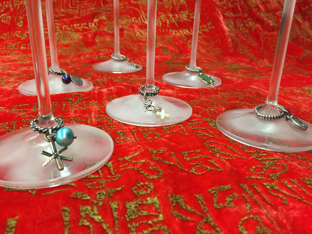 POTL, Crystal glass with pendant jewelry made of sterling silver and semi-precious stones. Every glass has a different unique pendant.Set of 6 glasses for the price of 5 glasses.