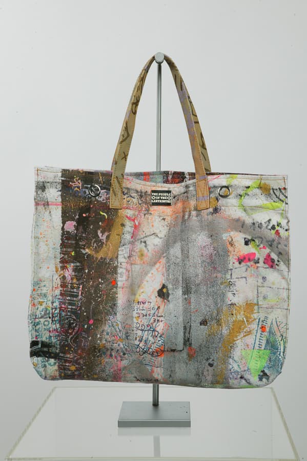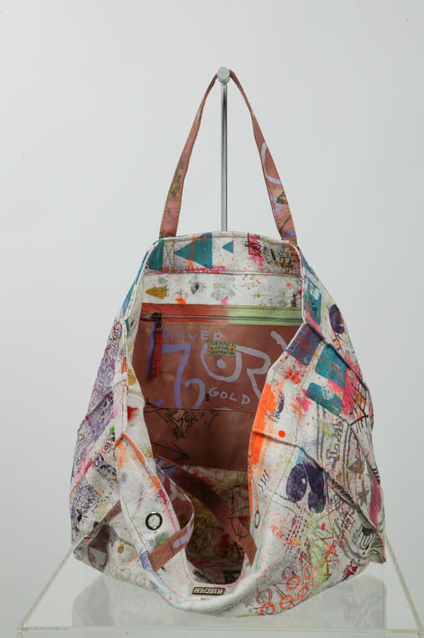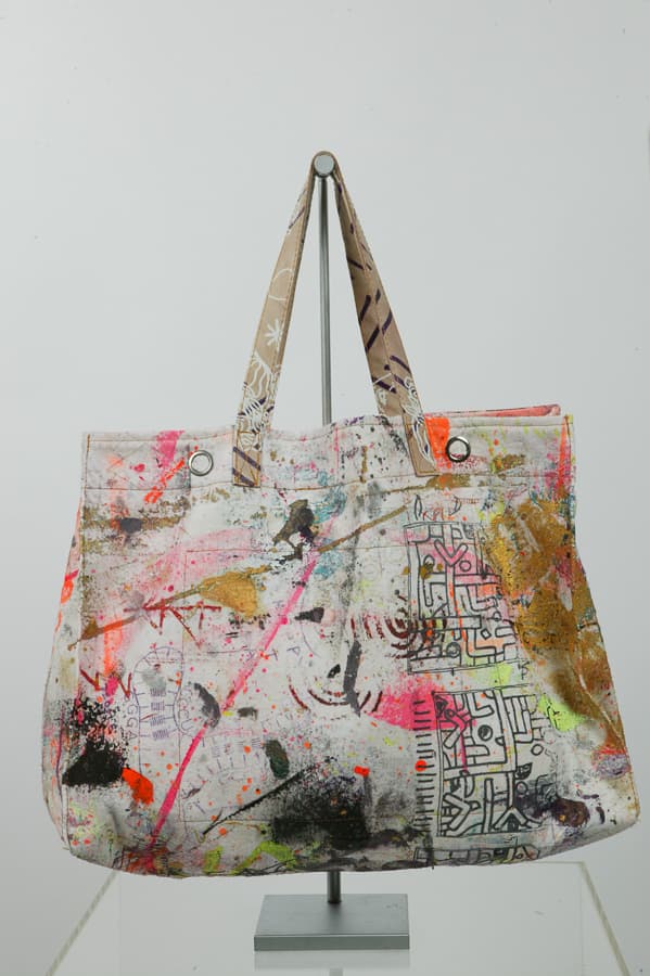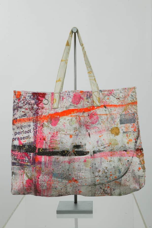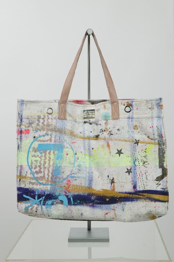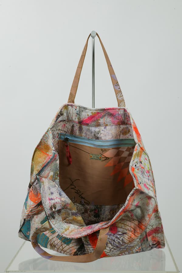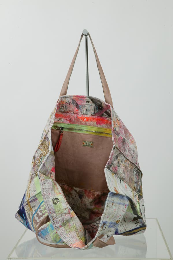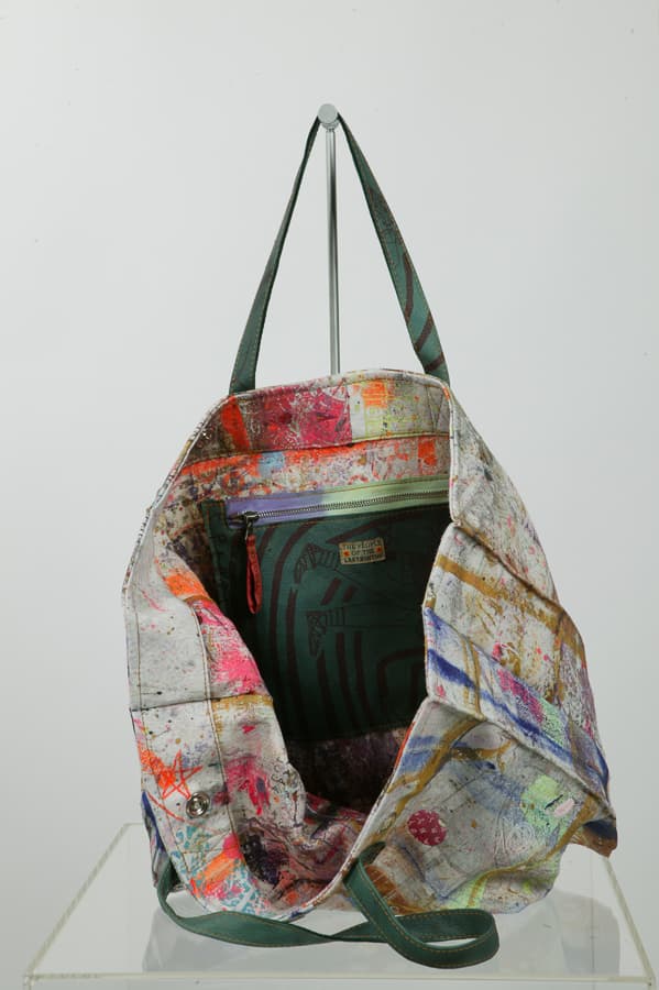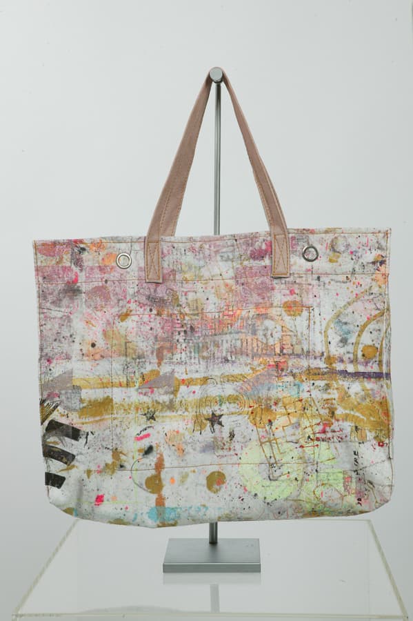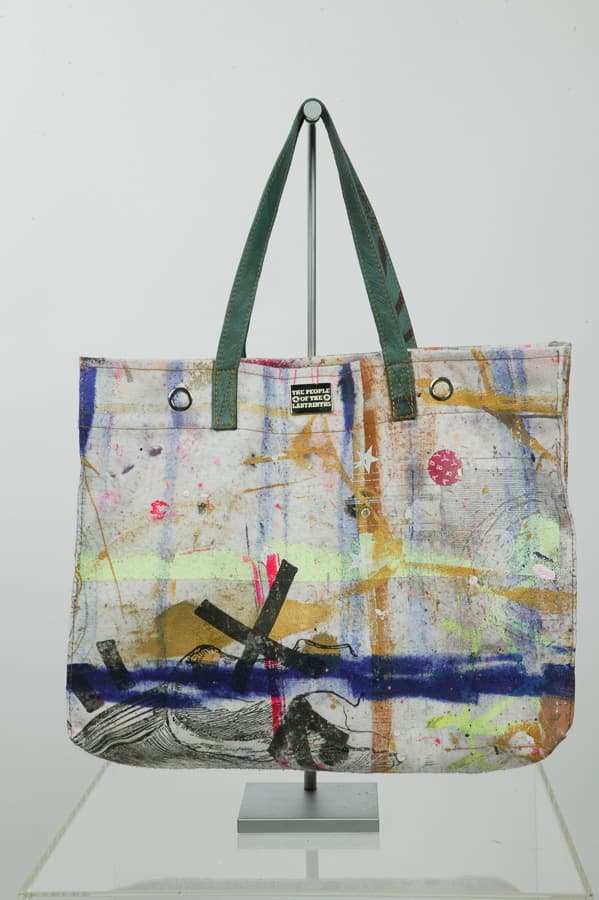 Cotton flanel shopping bag. Special limited edition, 1 of 12 pieces. All over screenprinted with leather straps and an inside pocket made of leather.