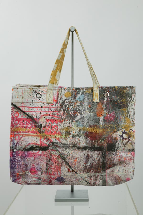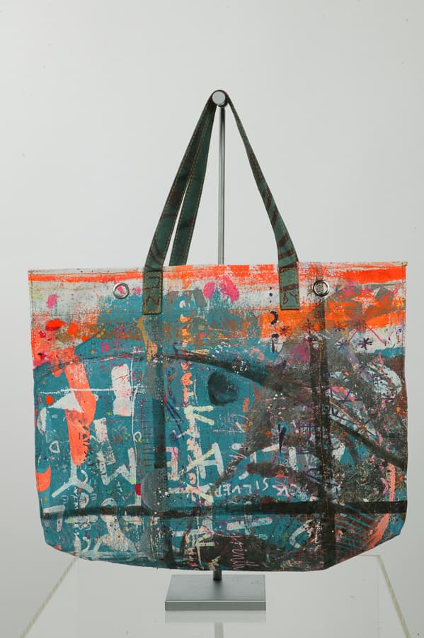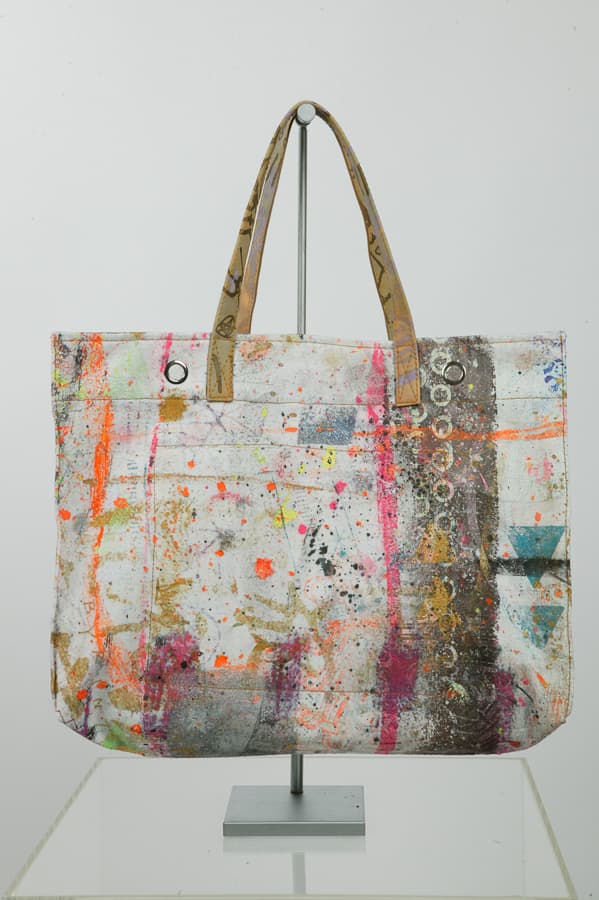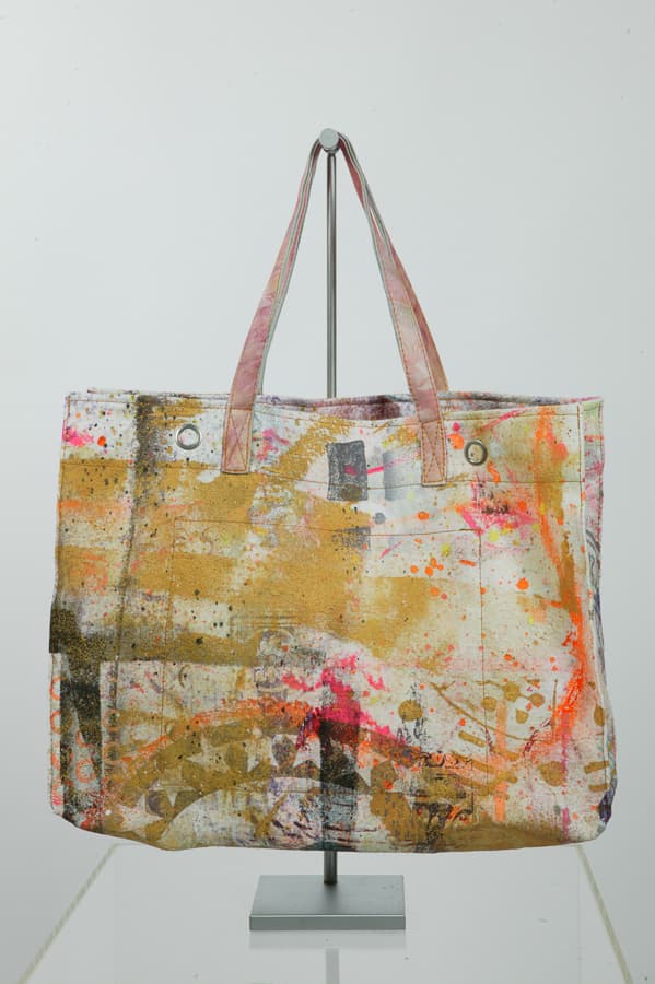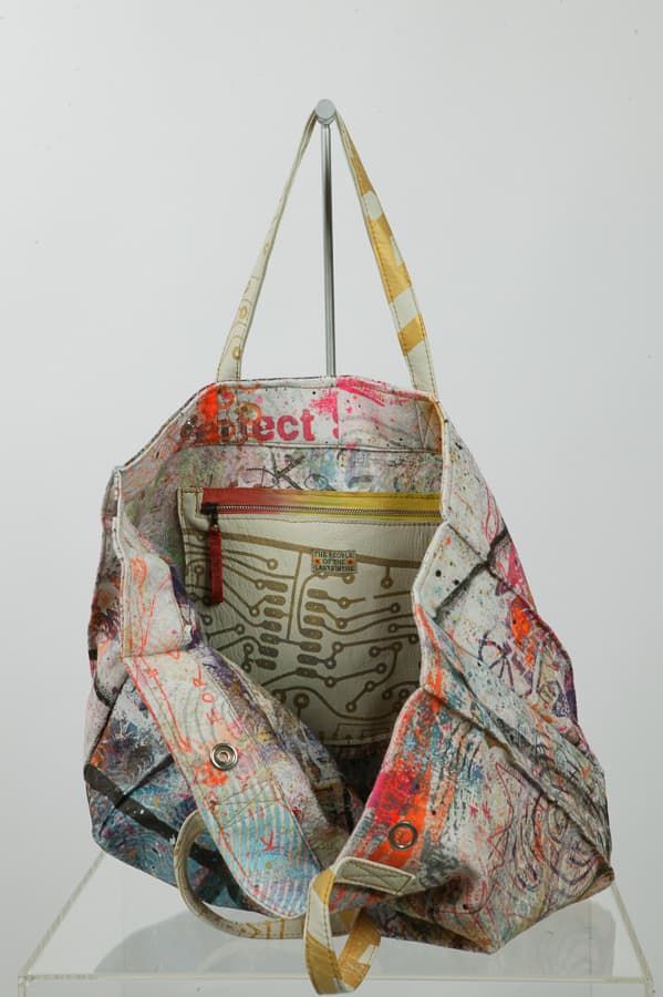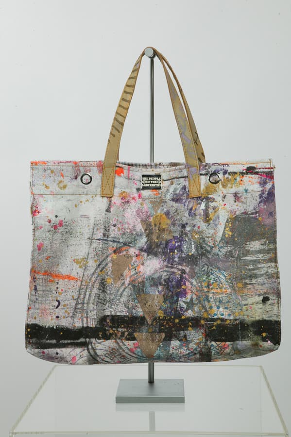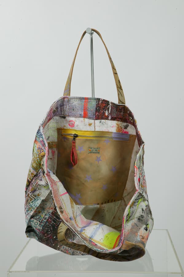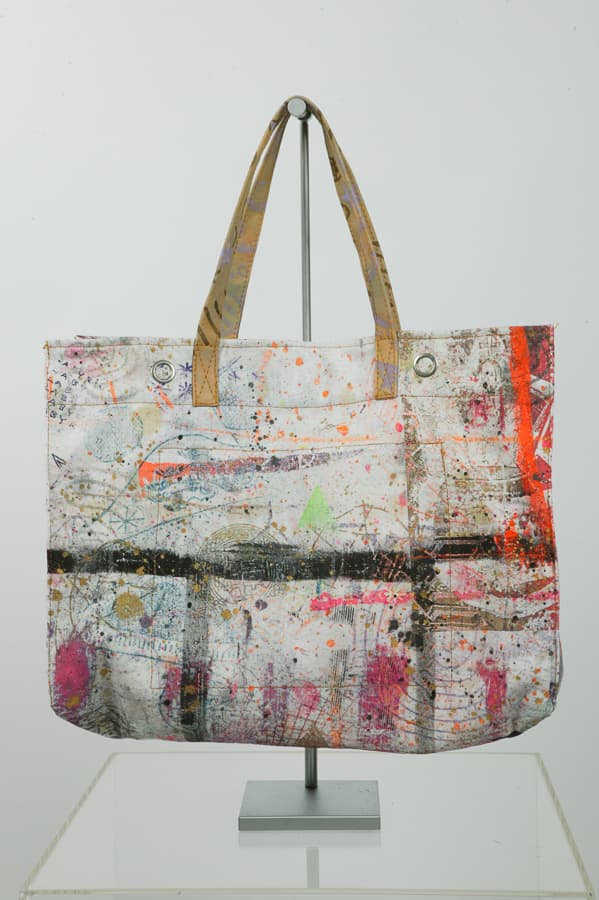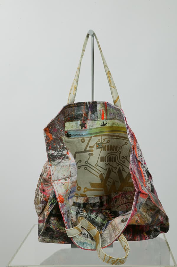 Cotton flanel shopping bag. Special limited edition, 1 of 12 pieces. All over screenprinted with leather straps and an inside pocket made of leather.