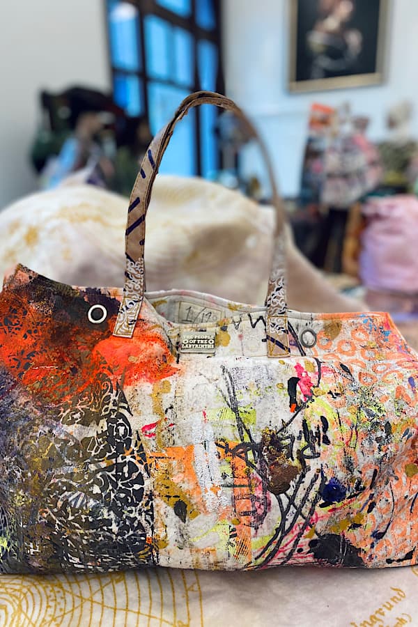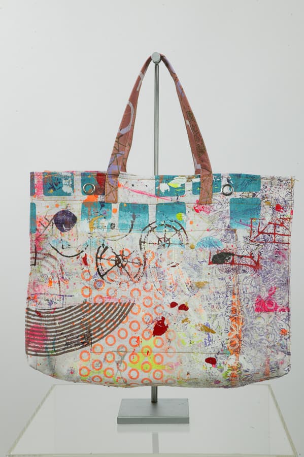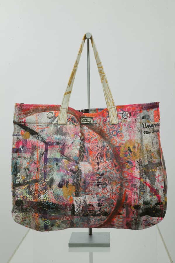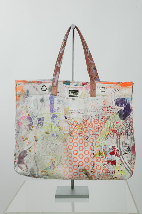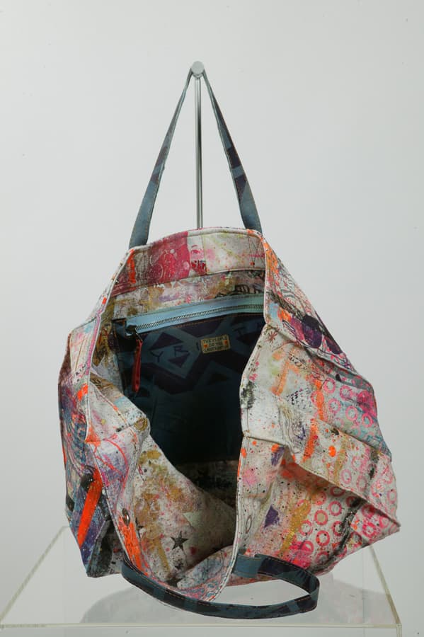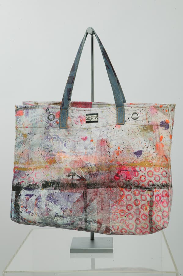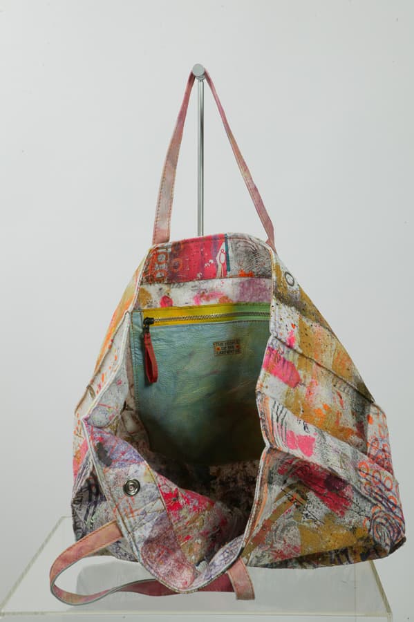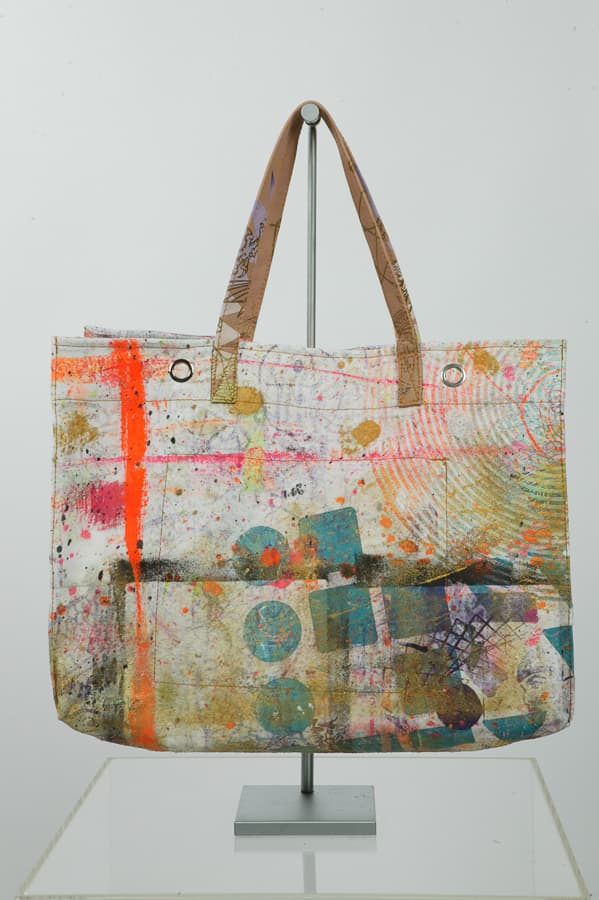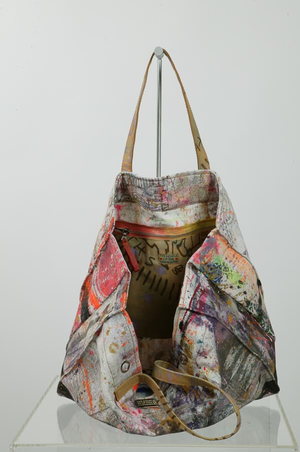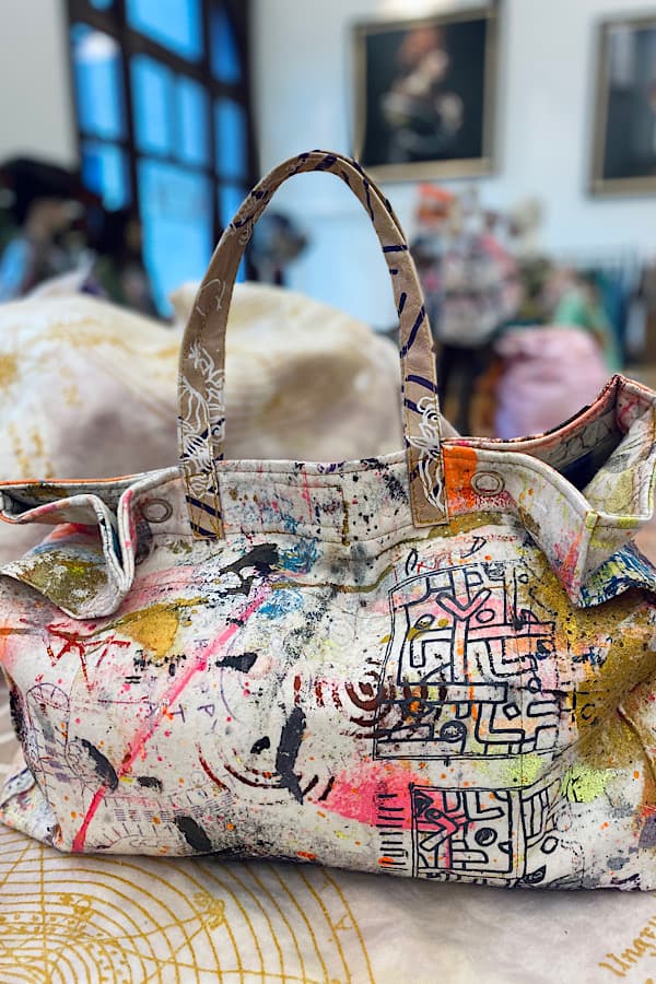 Cotton flanel shopping bag. Special limited edition, 1 of 12 pieces. All over screenprinted with leather straps and an inside pocket made of leather.